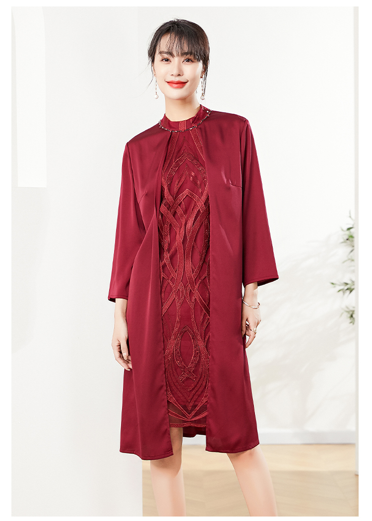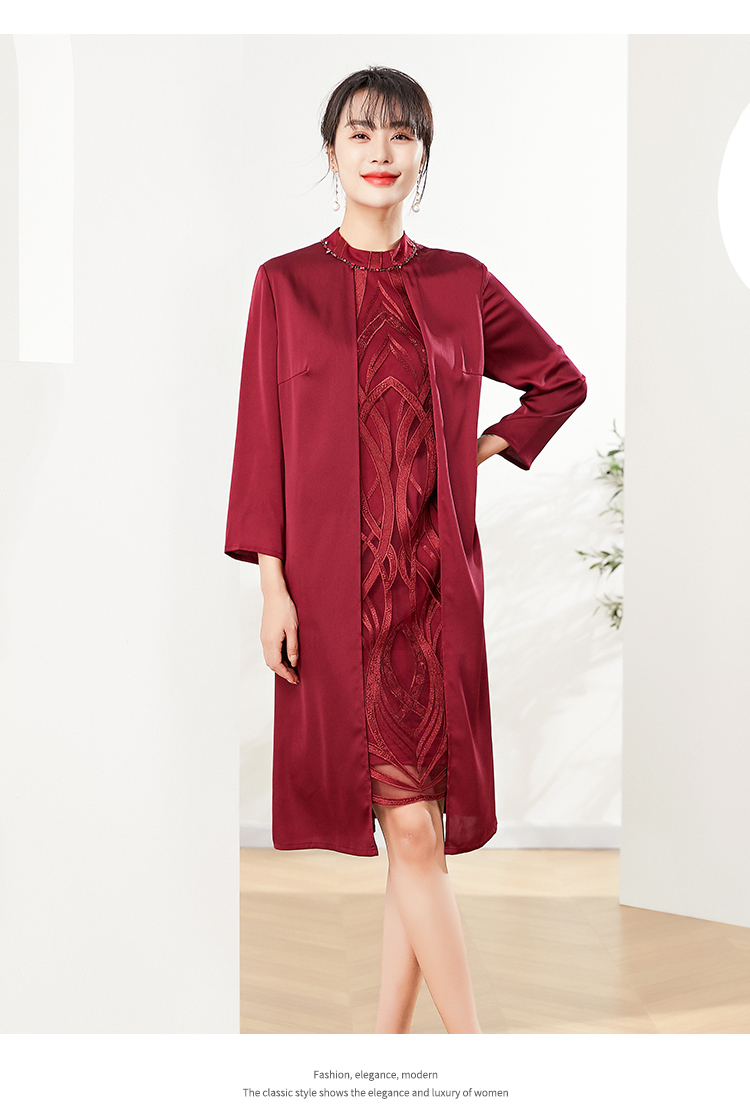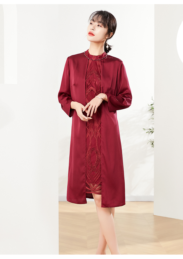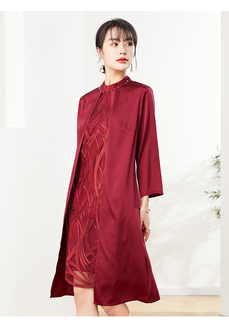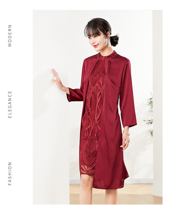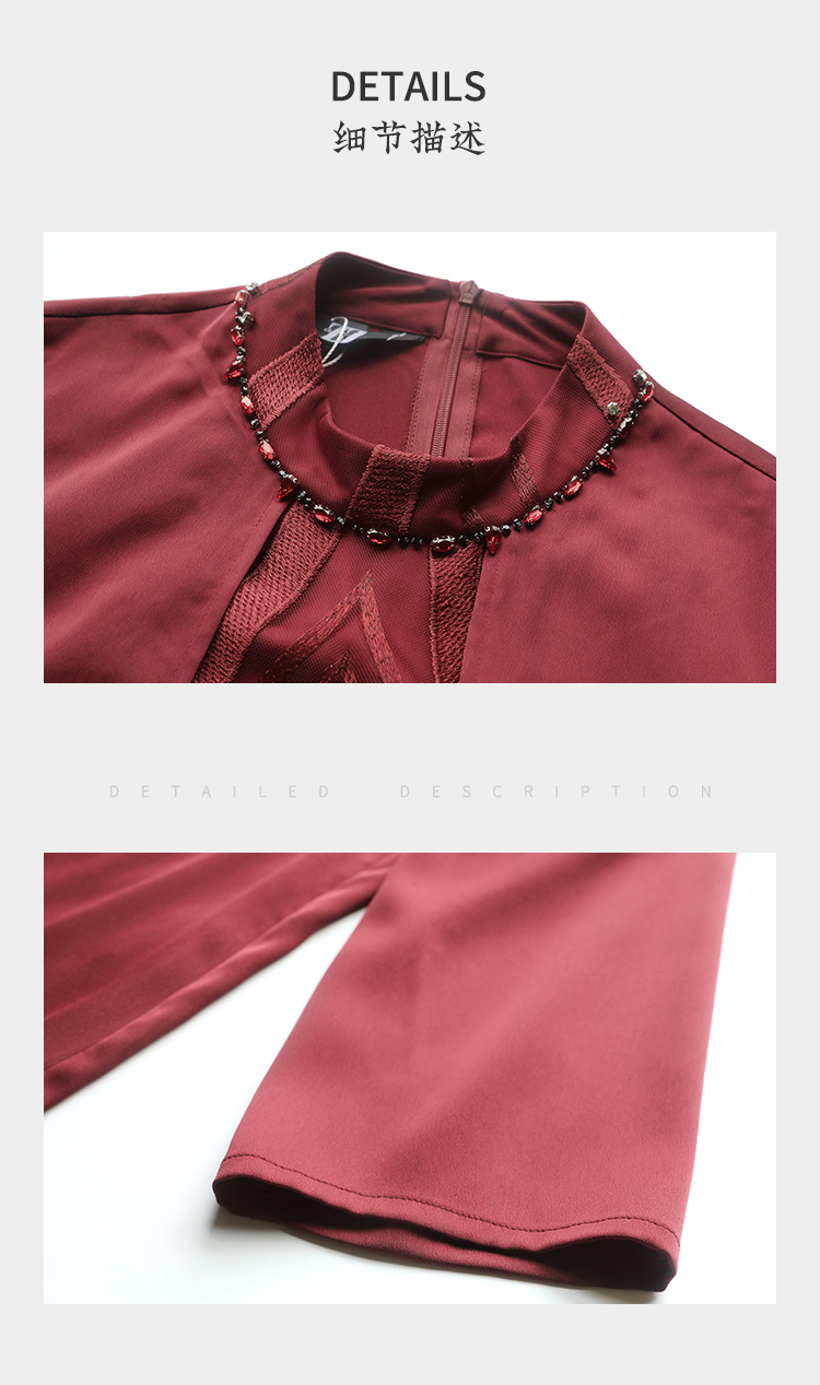 佐尔美秋季新款 红色气质绣花连衣裙 E01LL17