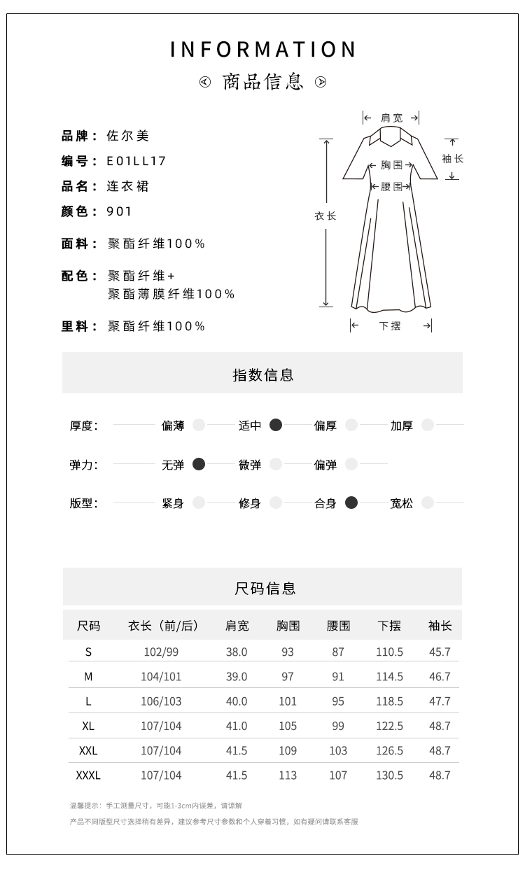 佐尔美年中女装碎花休闲修身显瘦九分袖连衣裙中裙E63LL03