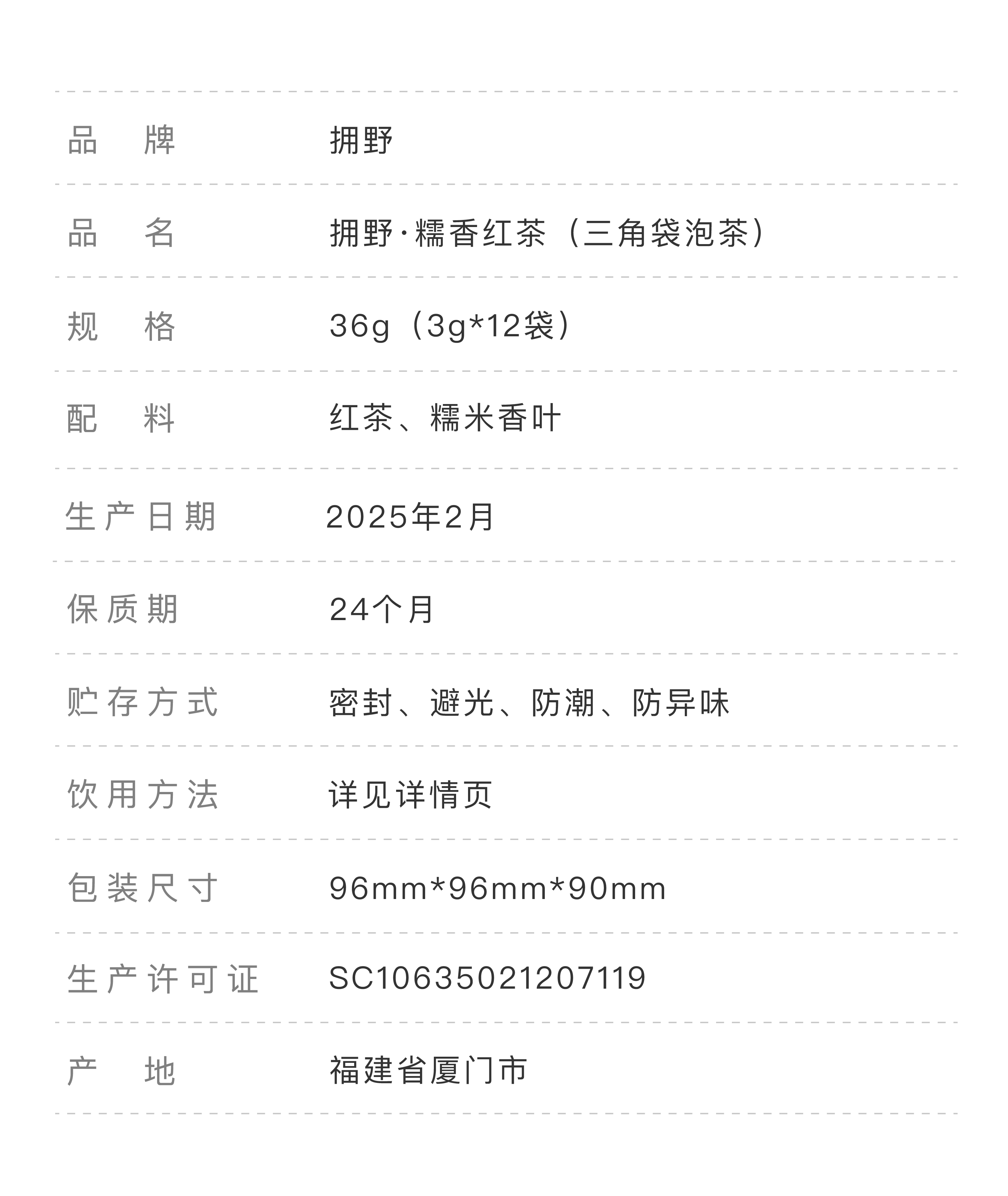 拥野·糯香红茶 三角袋泡茶 3gx12袋/盒