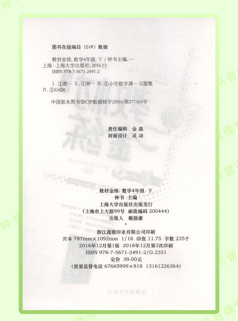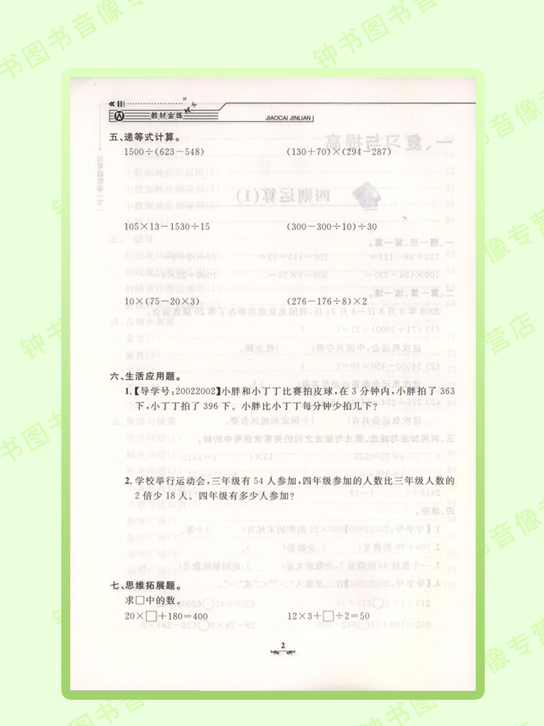 钟书金牌 教材金练新课标 4/四年级数学(下)(书+卷)下学期新课标 教辅 钟书正版辅导书