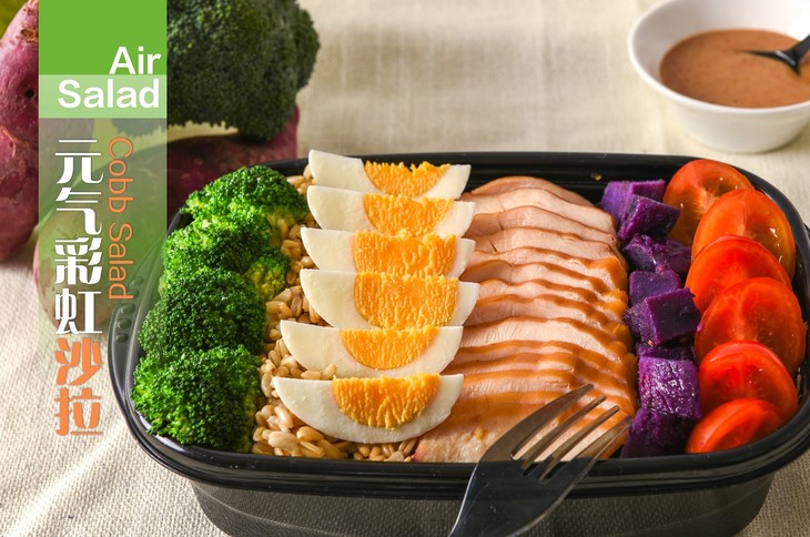推荐理由:结构合理,营养均衡。以什锦生菜、西兰花等时蔬为主料,具有高膳食纤维的特性,促进肠胃蠕动帮助消化吸收;选取鸡胸肉、鸡蛋等低脂高蛋白原料作为蛋白质来源,更容易被人体吸收利用。具有低脂、低糖、低盐、高纤维等特点,易产生饱腹感,较低的热量摄入给人体较小的负担,拥有更轻松的餐食体验。