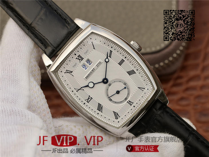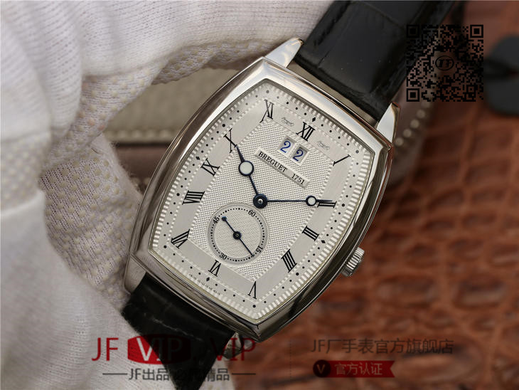 HG宝玑传承系列大日历显示腕表,别致的酒桶形表壳融合复杂功能于一身的5410,表壳外缘饰有钱币纹。