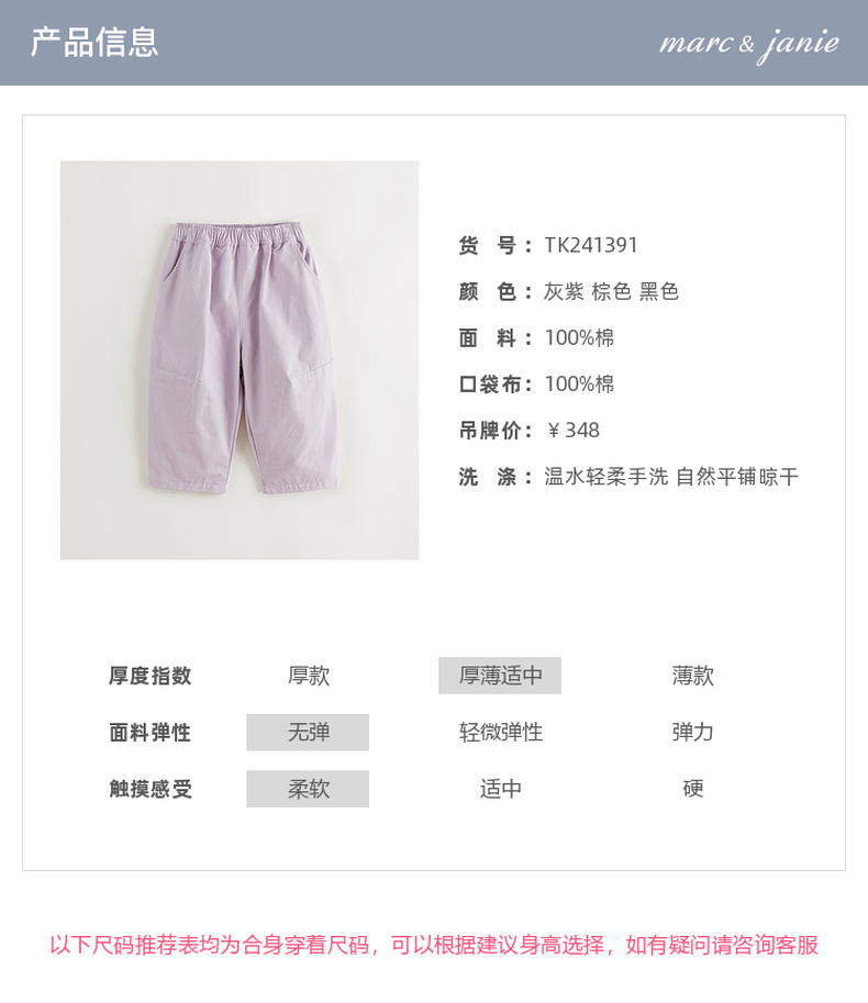 马克珍妮女童宽松休闲萝卜裤儿童纯棉裤子2024年秋装新款241391