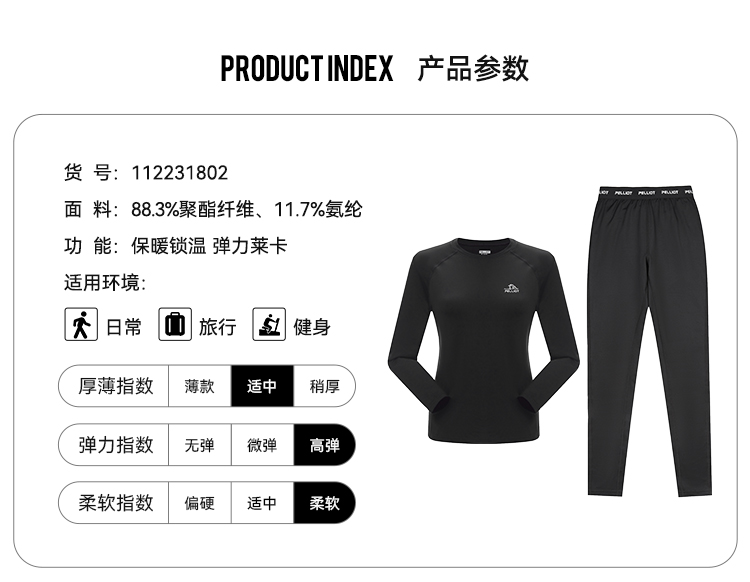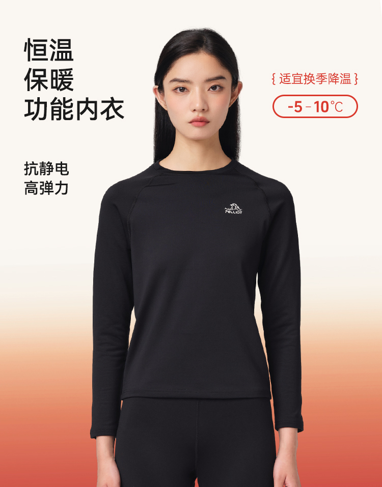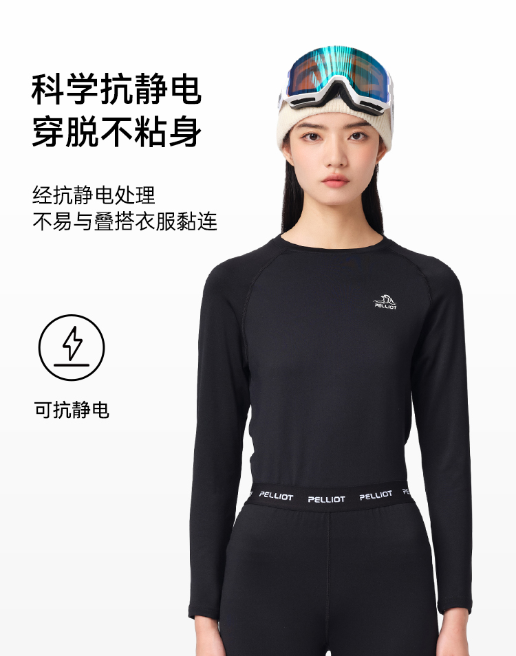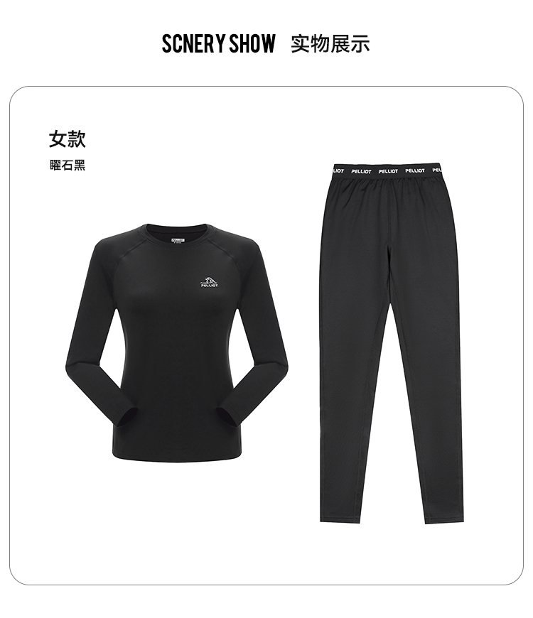 伯希和保暖功能内衣套装女户外运动滑雪抗静电打底高弹舒适肌底衣