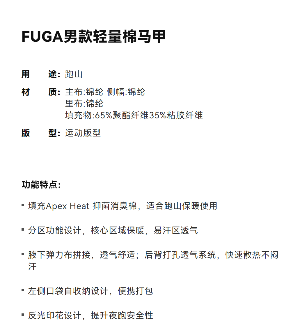 KAILAS凯乐石 FUGA男款轻量棉马甲 KG2510101【Z】
