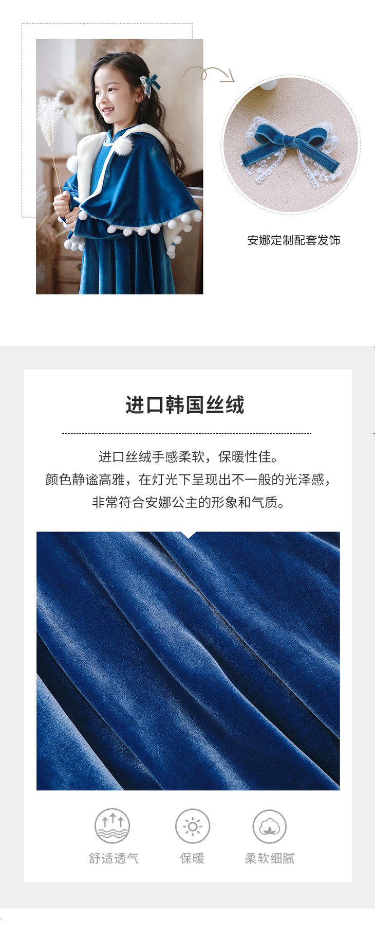 pureshare 安娜公主裙女童连衣裙新款圣诞礼服可爱-蓝公主和雪人