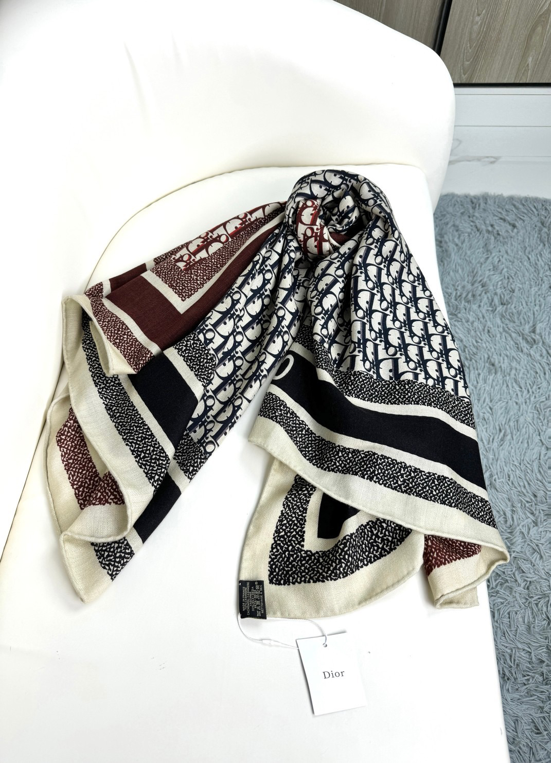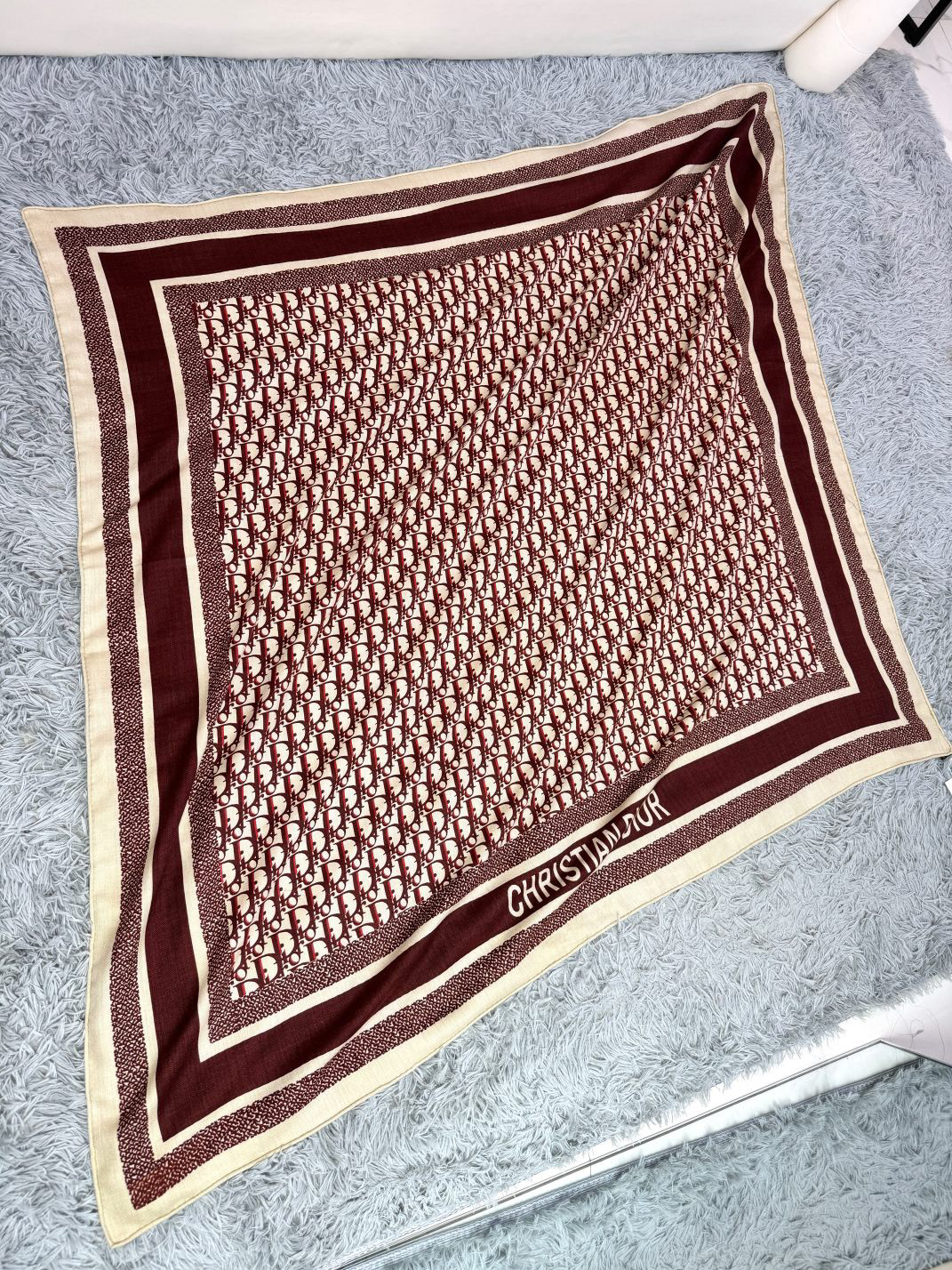 秋冬特惠💰450 迪家围巾【D字母双面方巾】这款方巾采用双色双面设计,向标志性的Obique印花致敬,采用桑蚕丝斜纹面料精心制作,搭配手工缉面线饰边,均饰以同色调“Christian”标志提花条形图案。可系在颈部或头部,打造耀眼夺目的秀场同款造型,度假及日常都非常好搭配的款,订单私流 双面双色,平时穿搭也非常好搭配,整个人看起来都会神采奕奕 好多不用多说,细节品质都看得清楚,绝对获赞的高规格品质 尺寸:140*140cm方巾,70羊绒+30%桑蚕丝定制