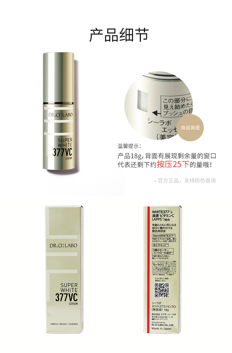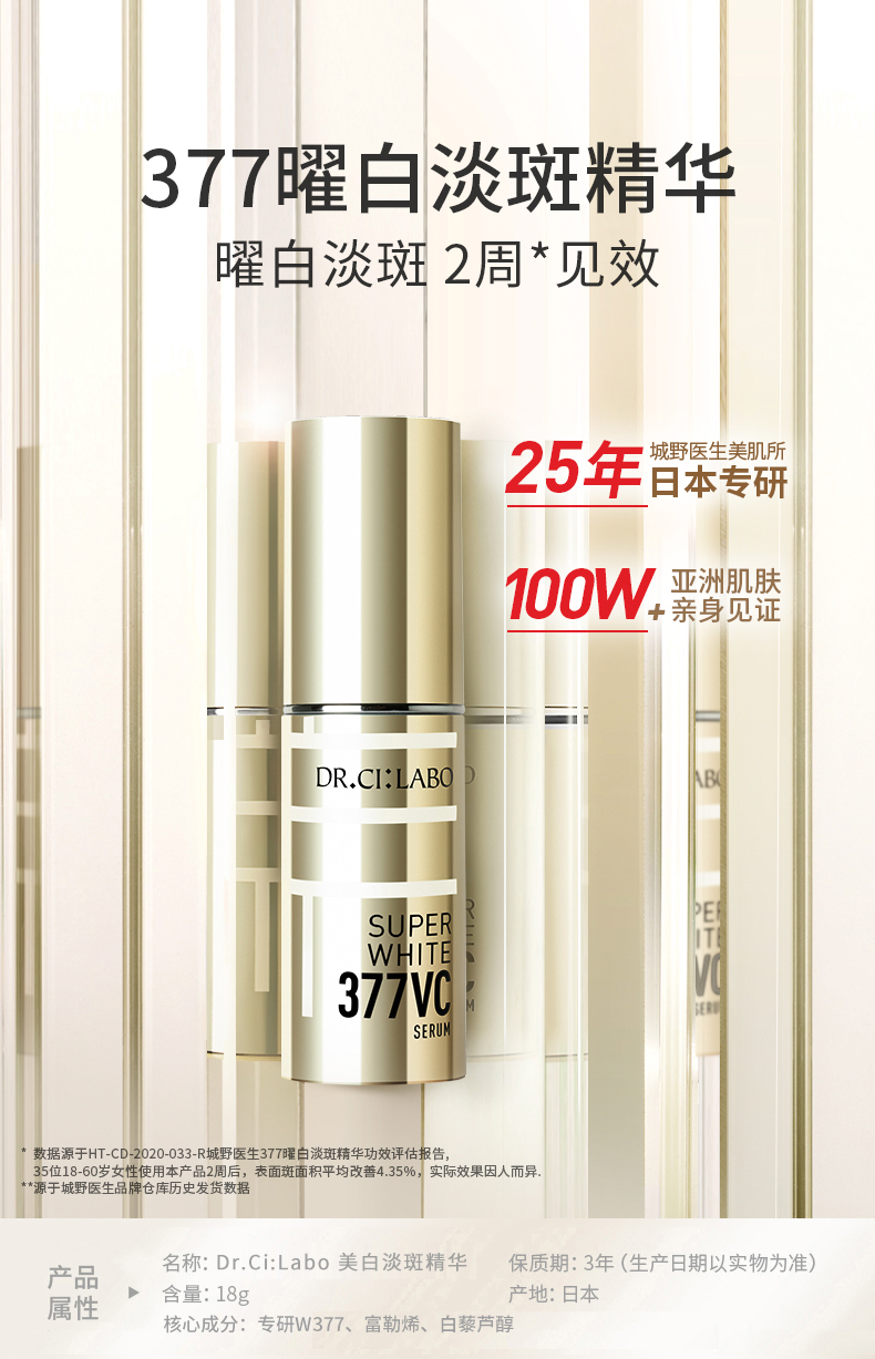 【中欧班列精选】城野医生VC377美白淡斑精华液18g BF