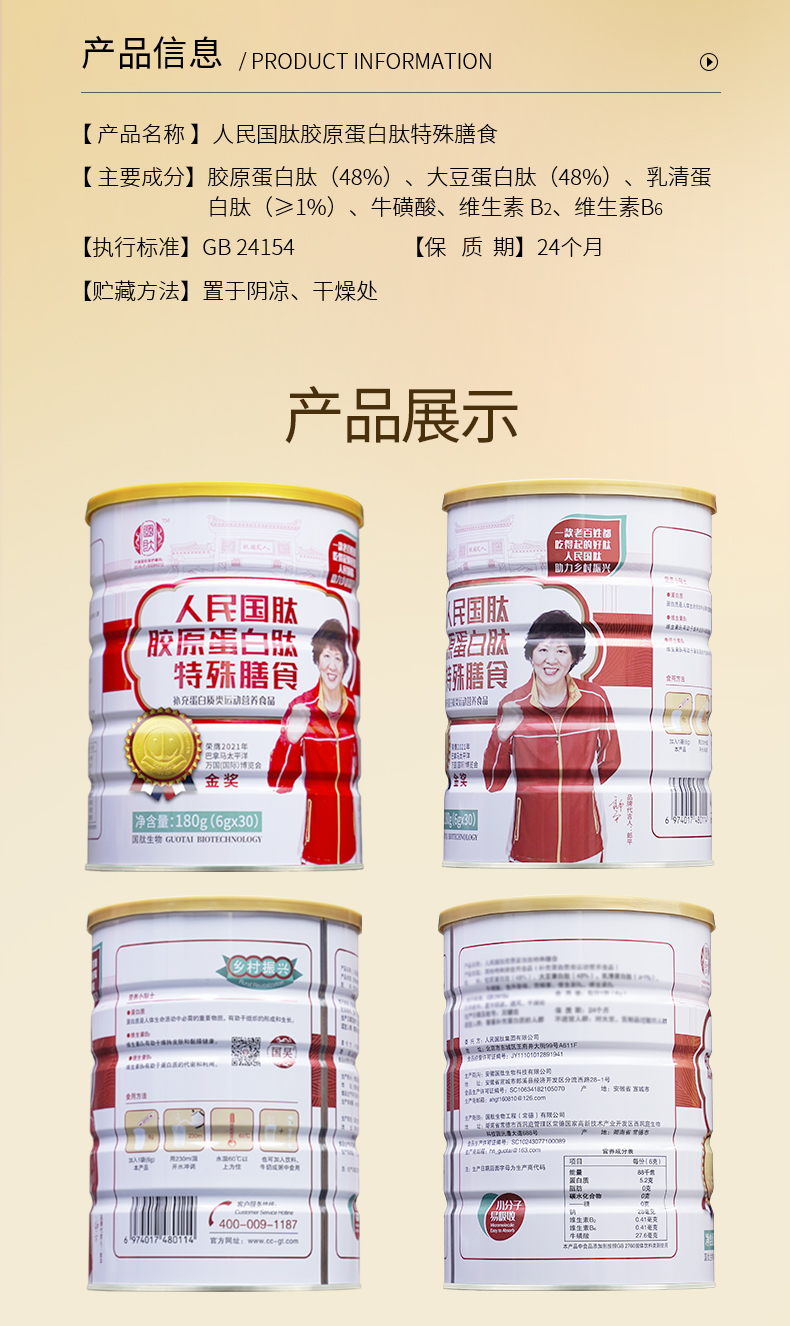 【6桶】人民国肽胶原蛋白肽特殊膳食180g(6g*30袋)三肽合一