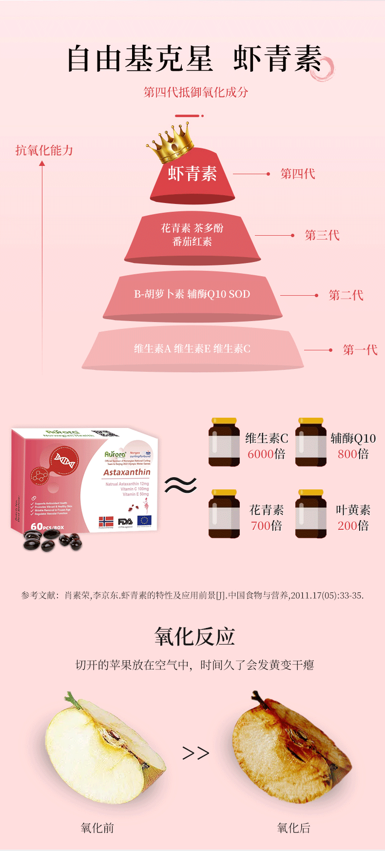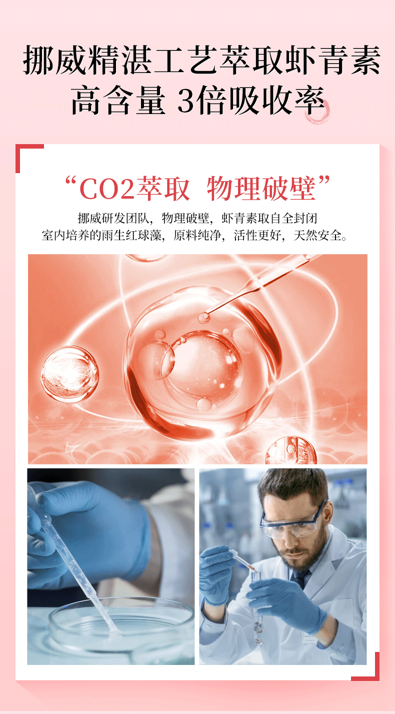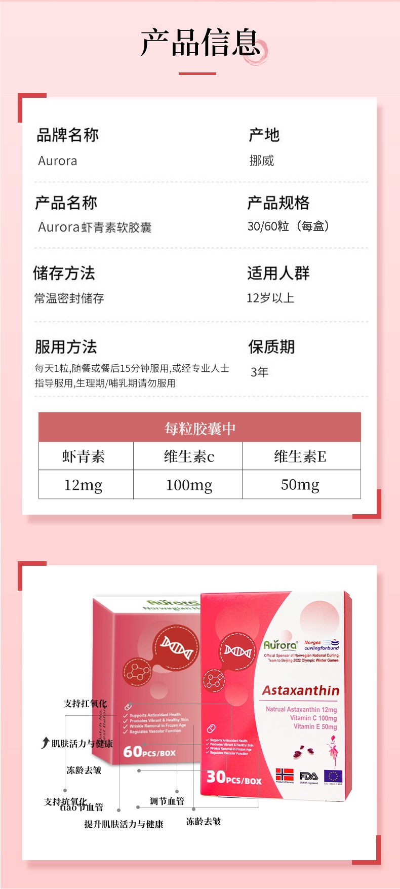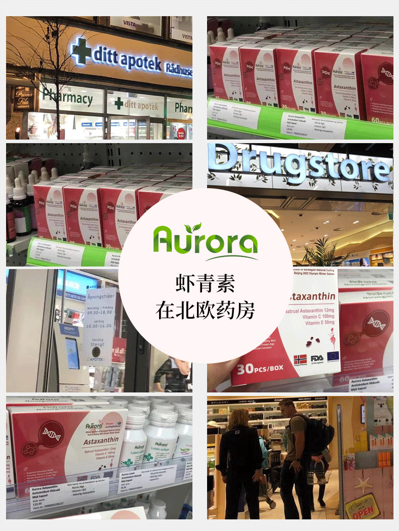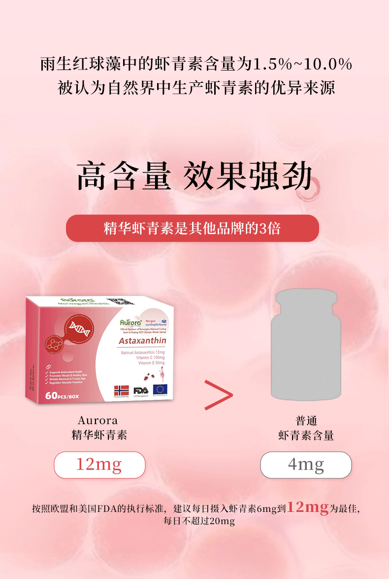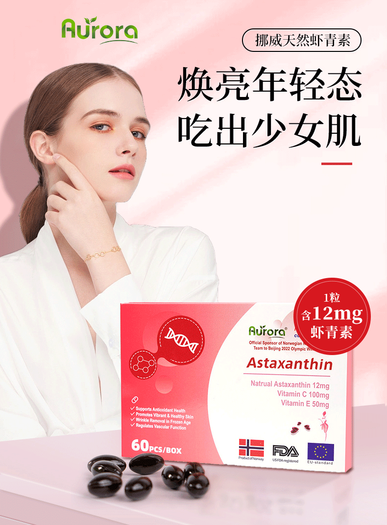 Aurora挪威进口天然虾青素精华软胶囊雨生红球藻60粒非磷虾油