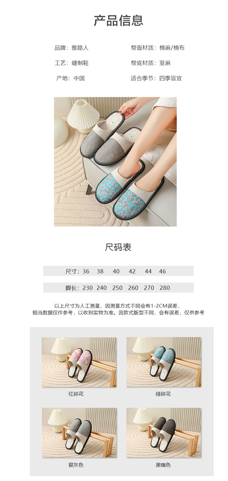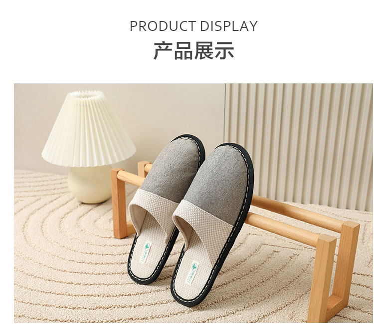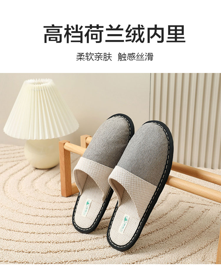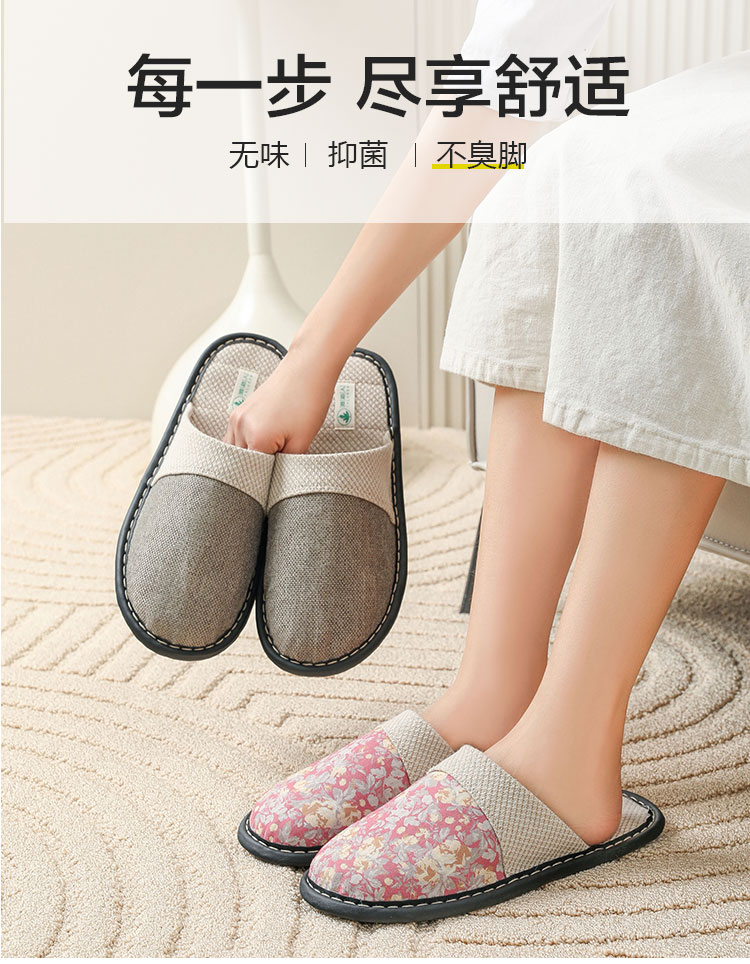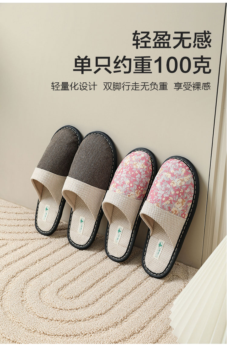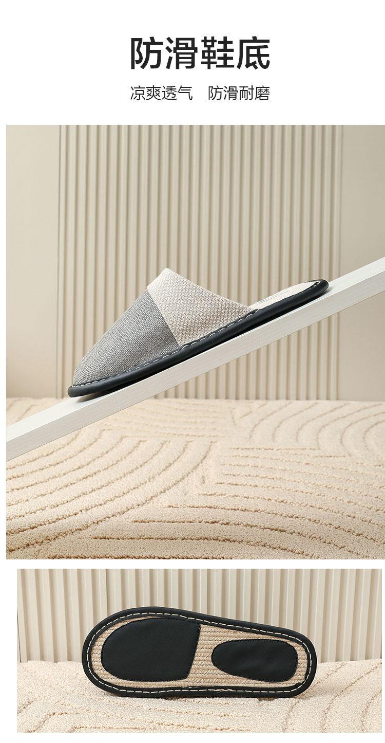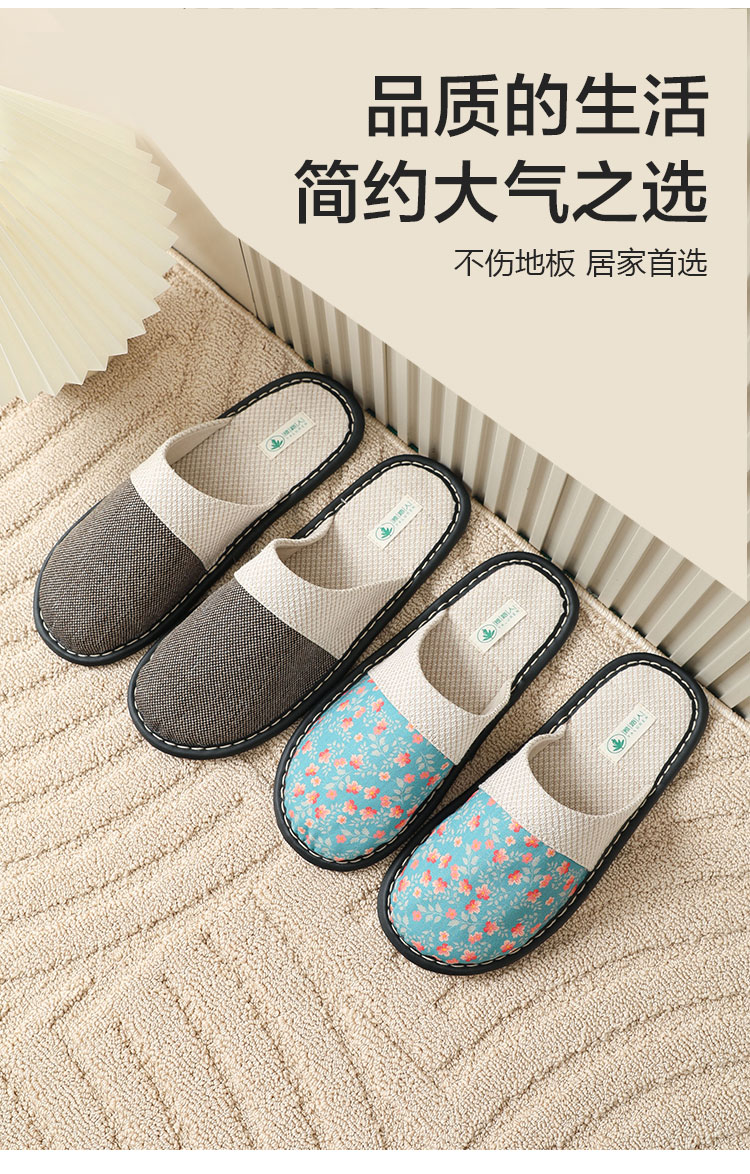 新品亚麻包头情侣拖鞋家居室内木地板软底不臭脚静音四季简约高级2023-04