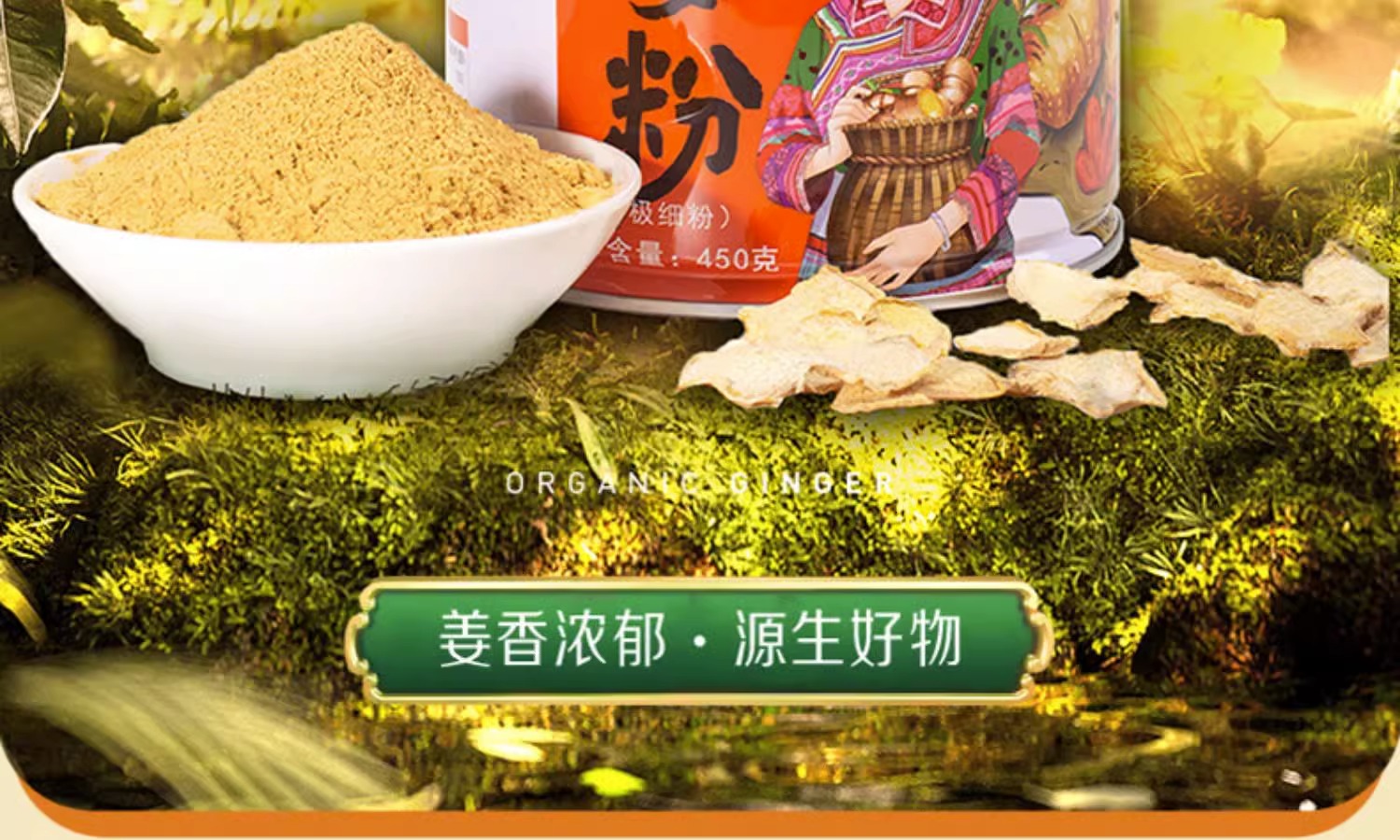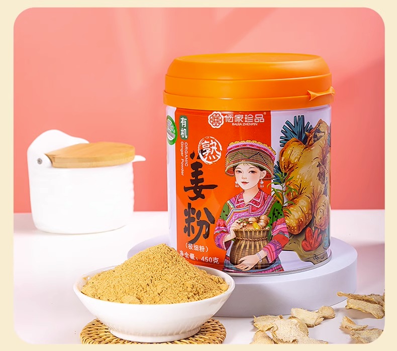 佰家珍品有机熟姜粉原始点食用炒制纯干小黄姜粉原始点冲饮泡调料