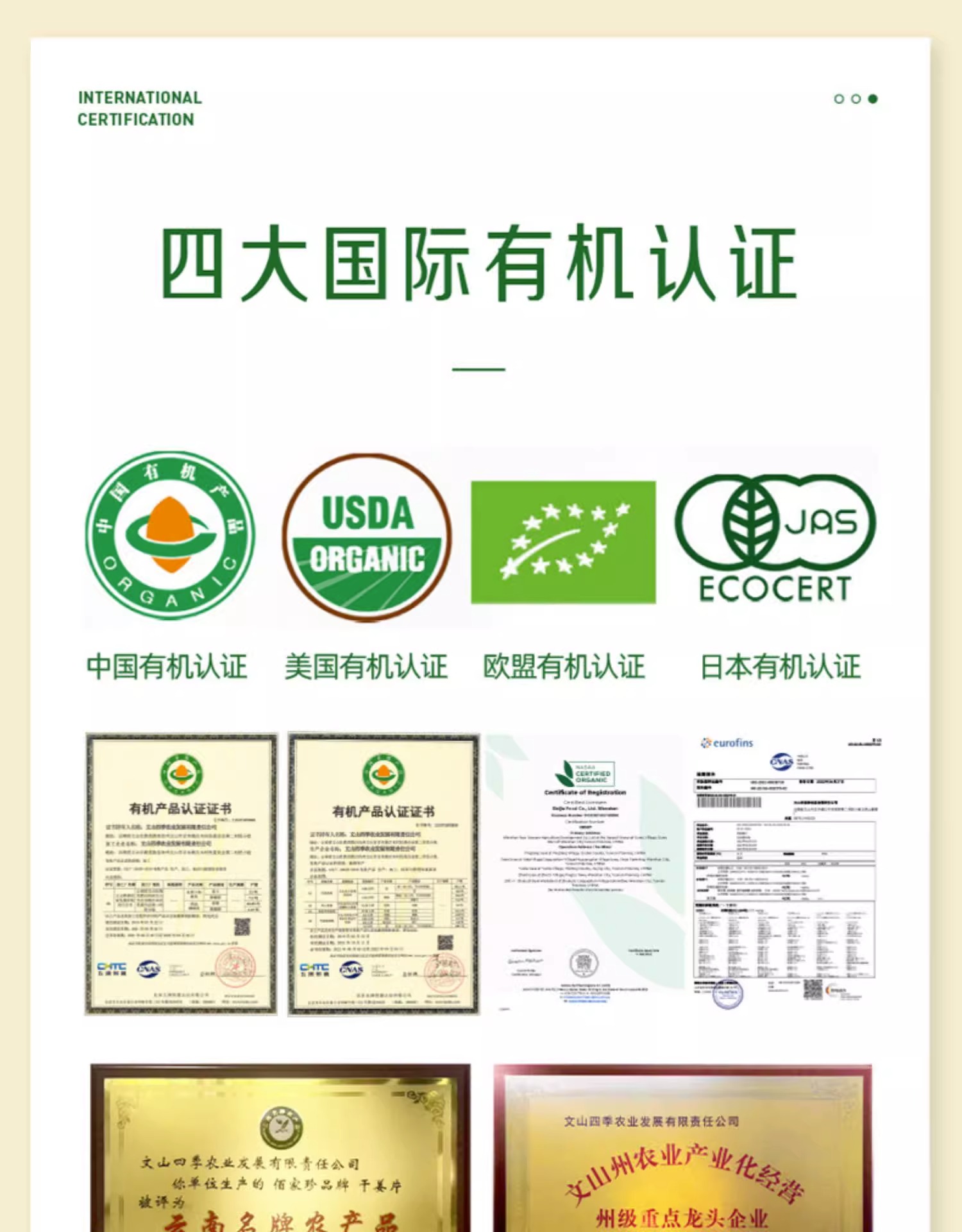 我们坚持遵循有机标准,种植过程不使用农药,化肥,