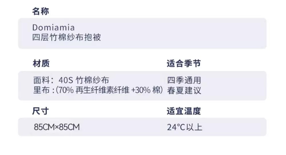 Domiamia 婴幼儿四层纱布抱被夹不夹棉 适宜25度