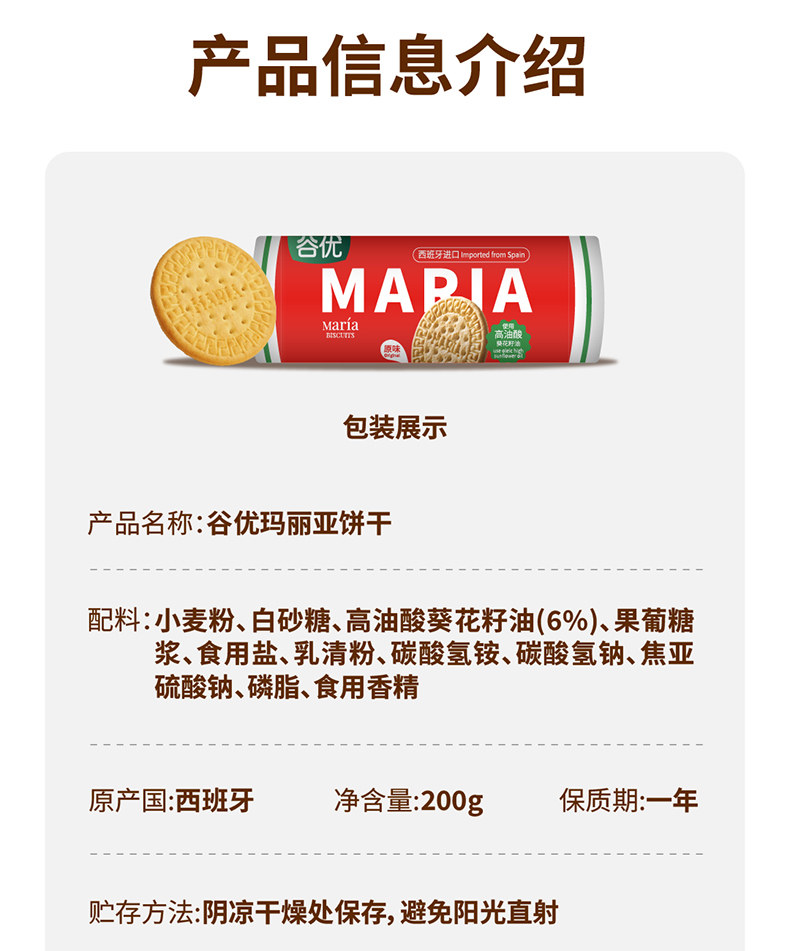 200g 西班牙进口 谷优玛丽亚饼干 休闲零食 木糠 芝士蛋糕用