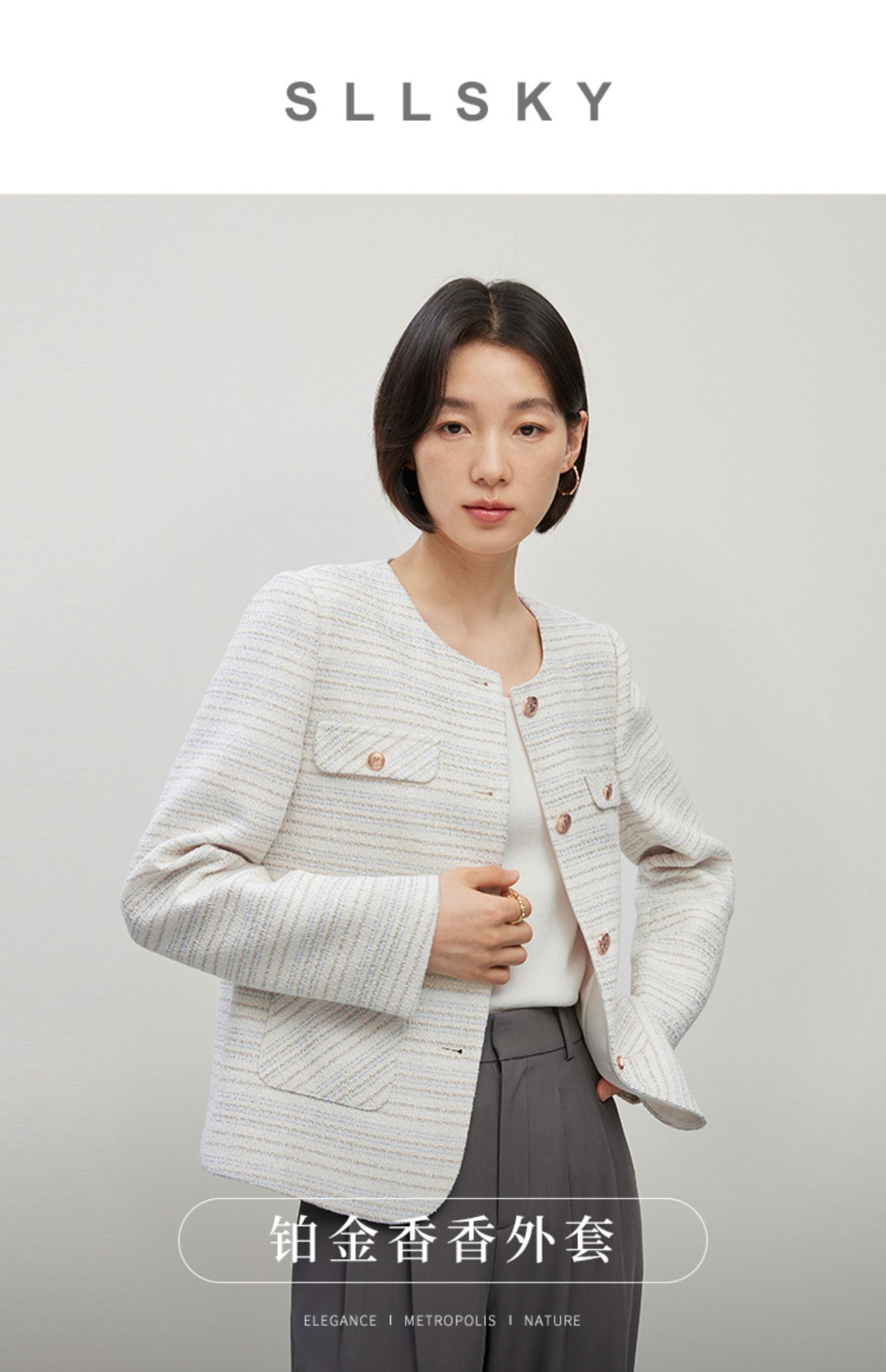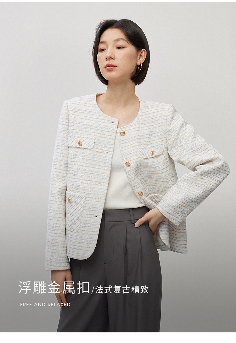 【年货节】熙世界法式气质小香风外套2025秋装新款高级感通勤短款圆领上衣