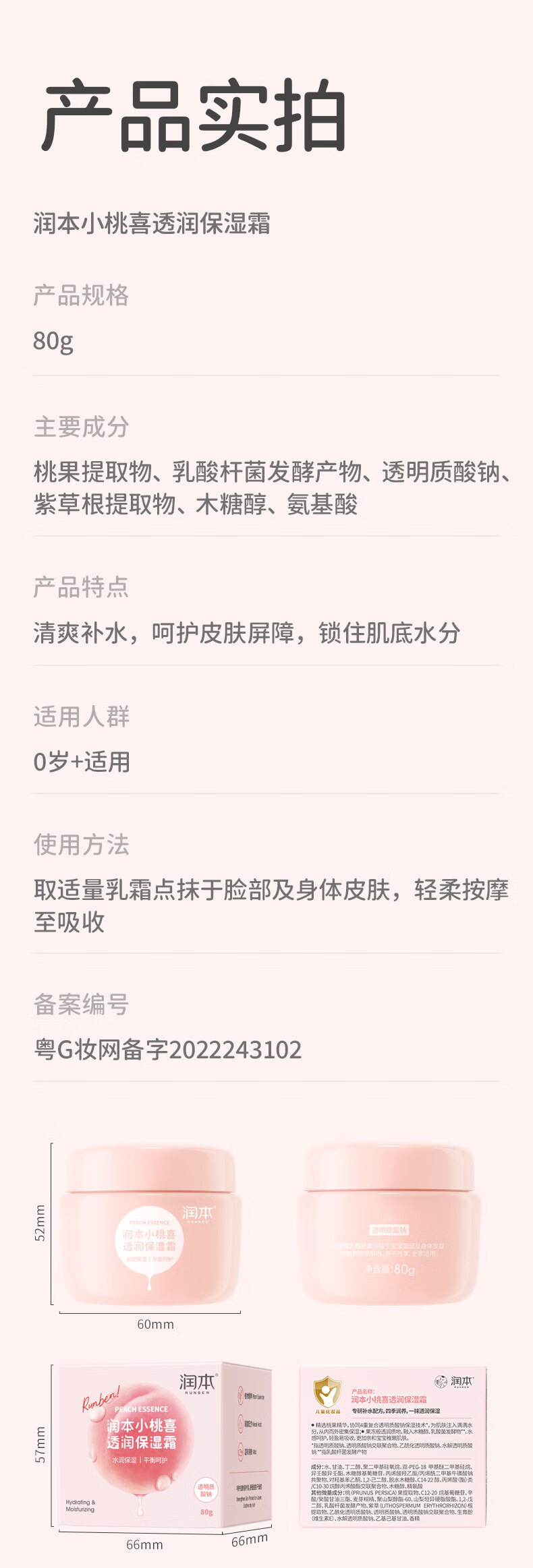 润本(RUNBEN)宝宝面霜 80g