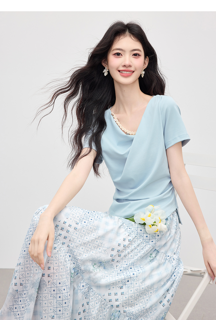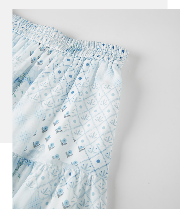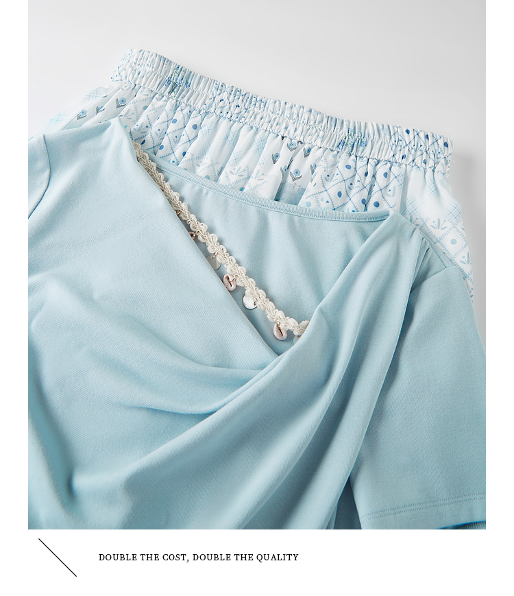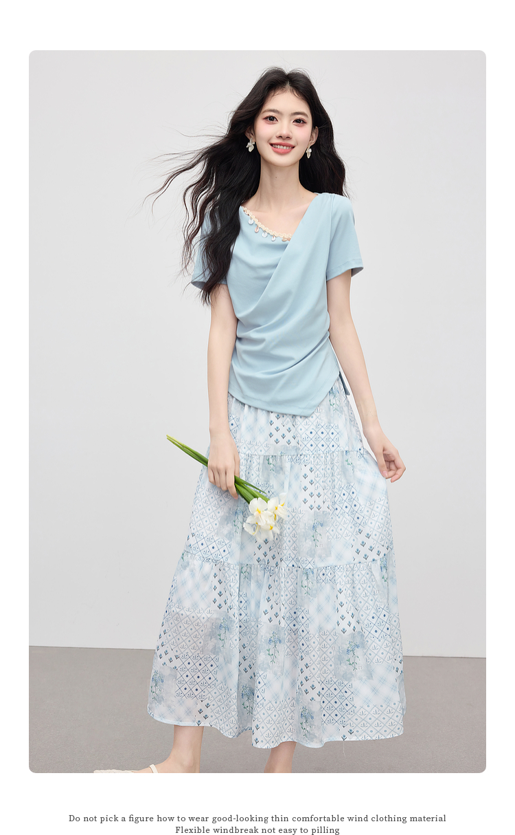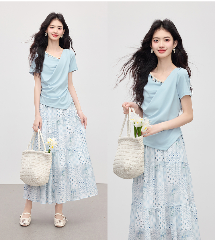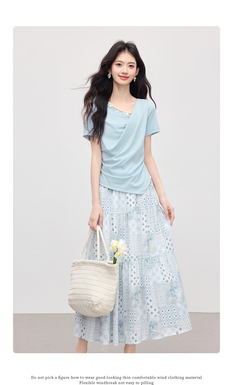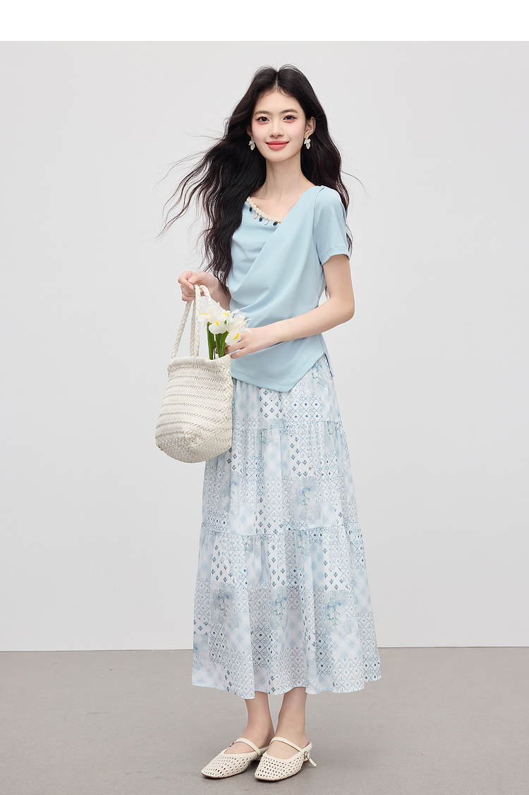 【周末秒杀】熙世界夏日独特漂亮套装裙女装新款收腰T恤印花蛋糕半身裙两件套