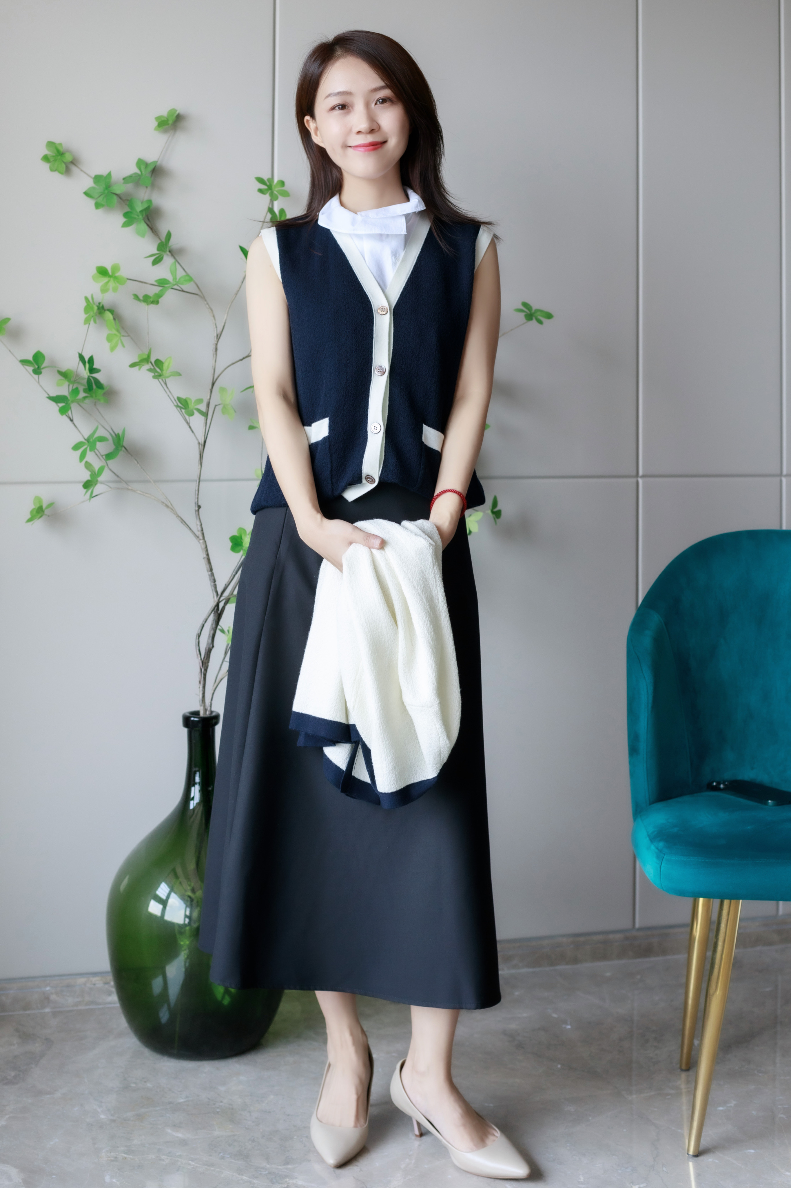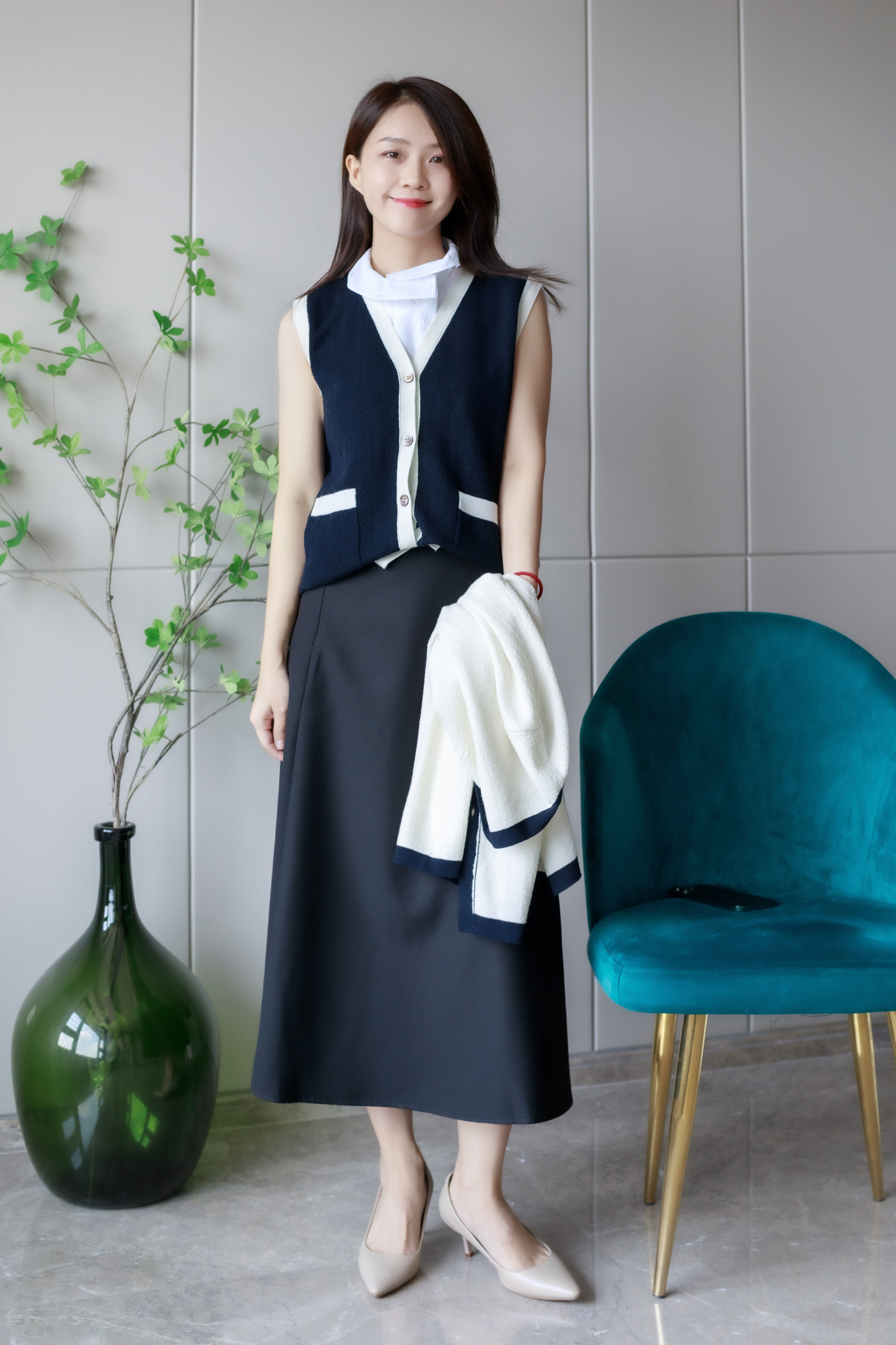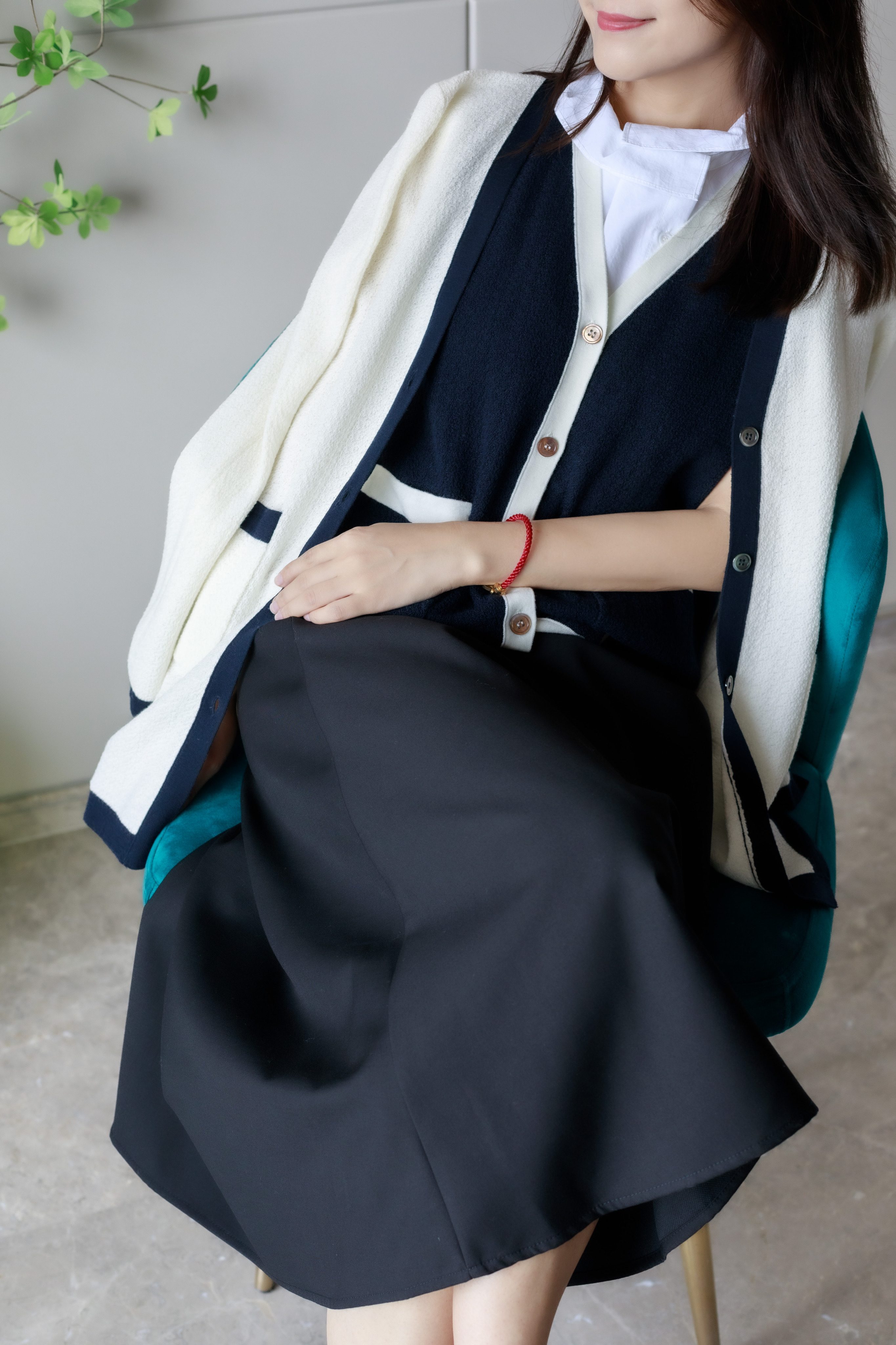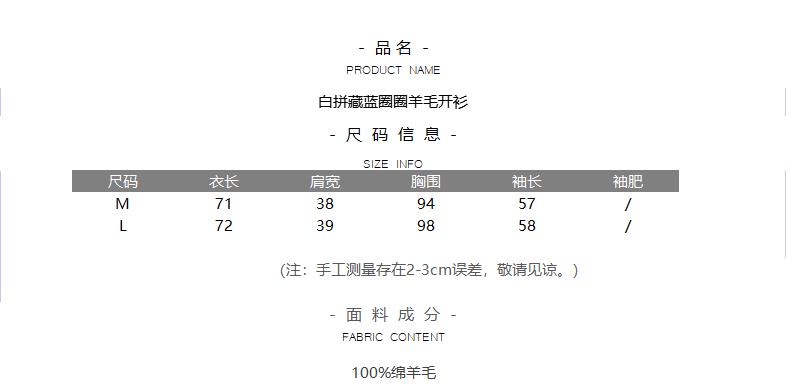 白拼藏蓝圈圈羊毛开衫