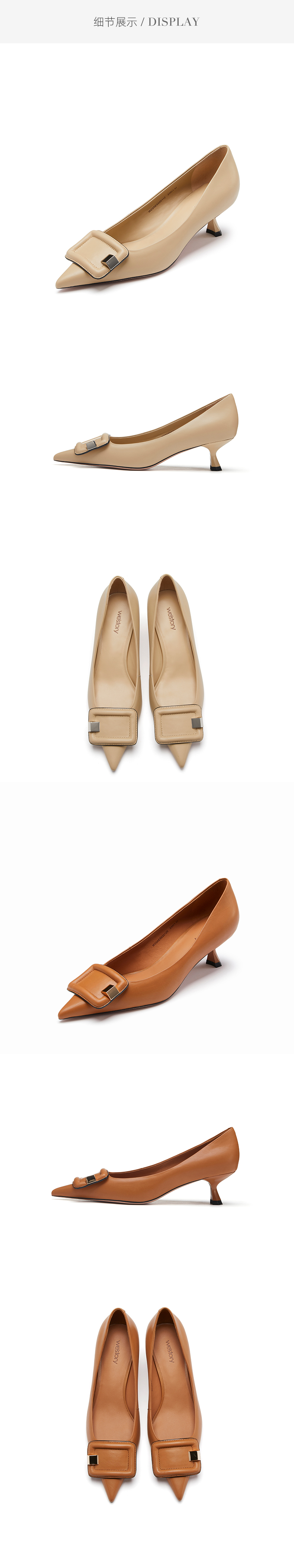 westory23年春复古尖头水钻扣单鞋女休闲通勤名媛风小猫跟55201