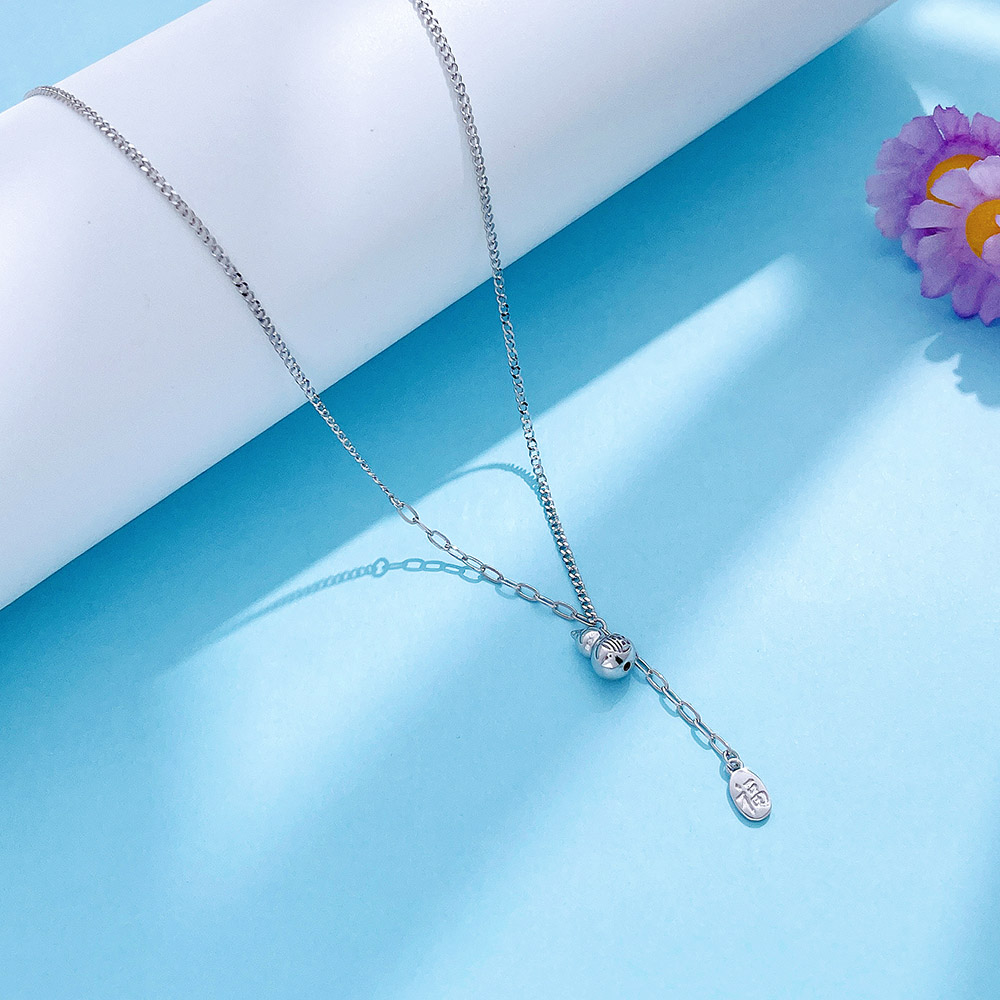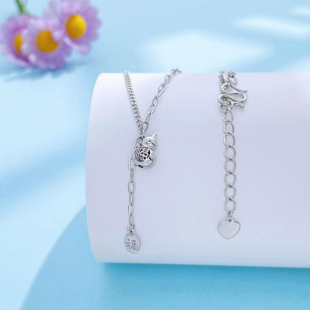 【限时8.8折】【线上铂金馆】PT950 #招财纳福 #祈福 【精品】铂金实心福字方牌流苏项链福禄双全吸金葫芦调节套链(BFPTTL00025)预售产品下单后不退款不退货不换货不补差价)