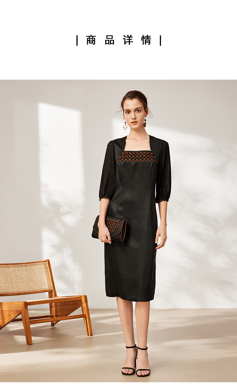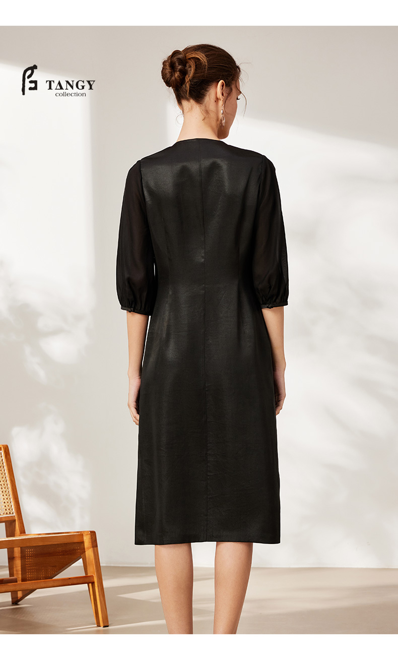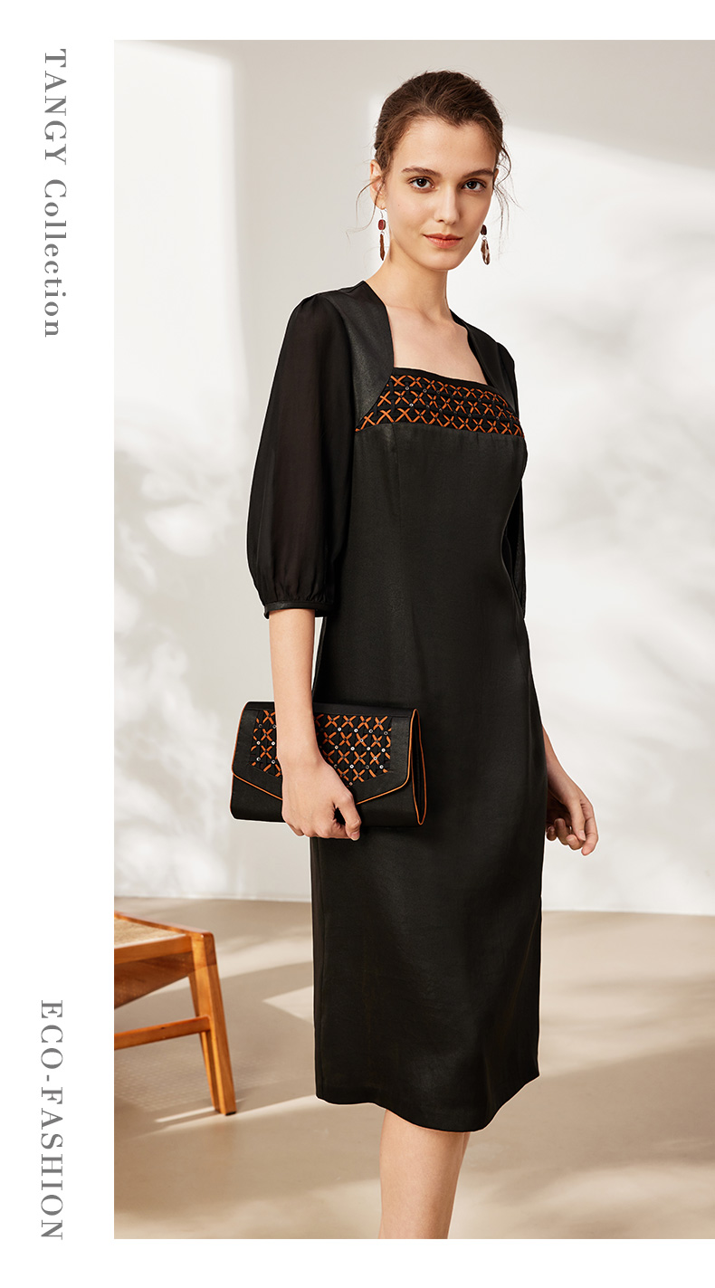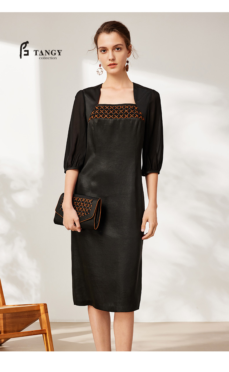 TANGY Collection天意2025秋季新品商场同款女一字领连衣裙L253806