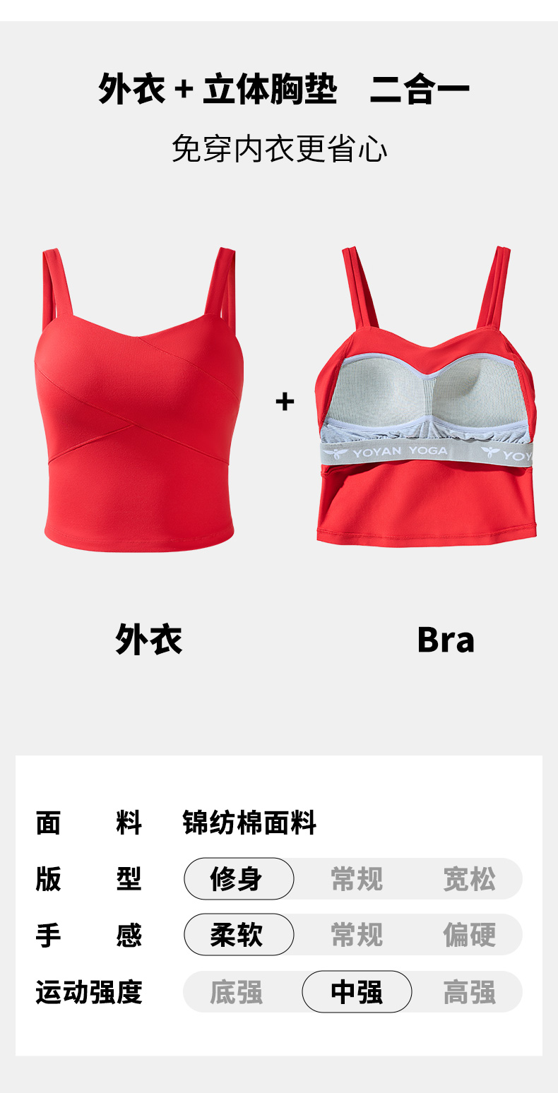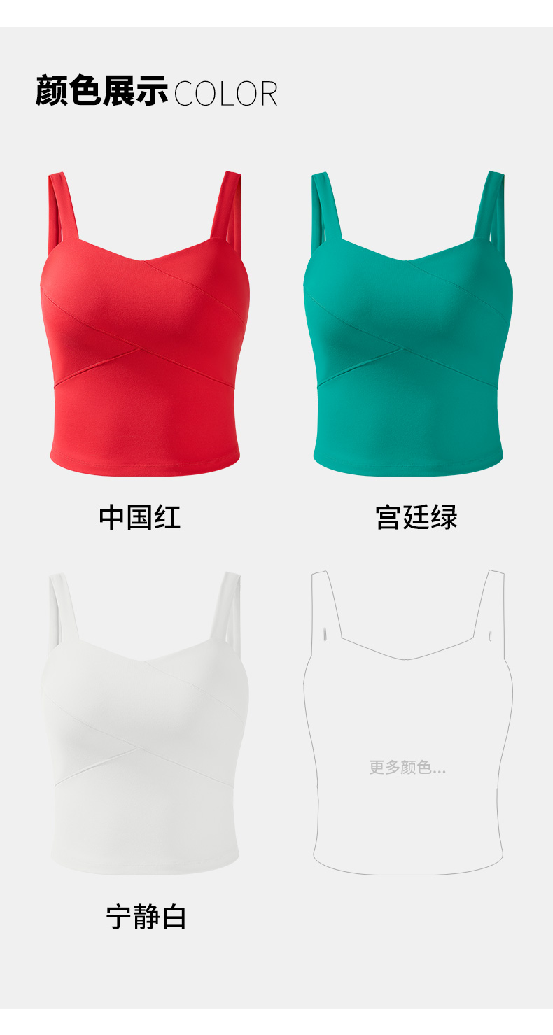 [新品·限量款]悠妍女士宽肩带桃心领瑜伽背心BX25102 定制锦仿棉面料带胸垫