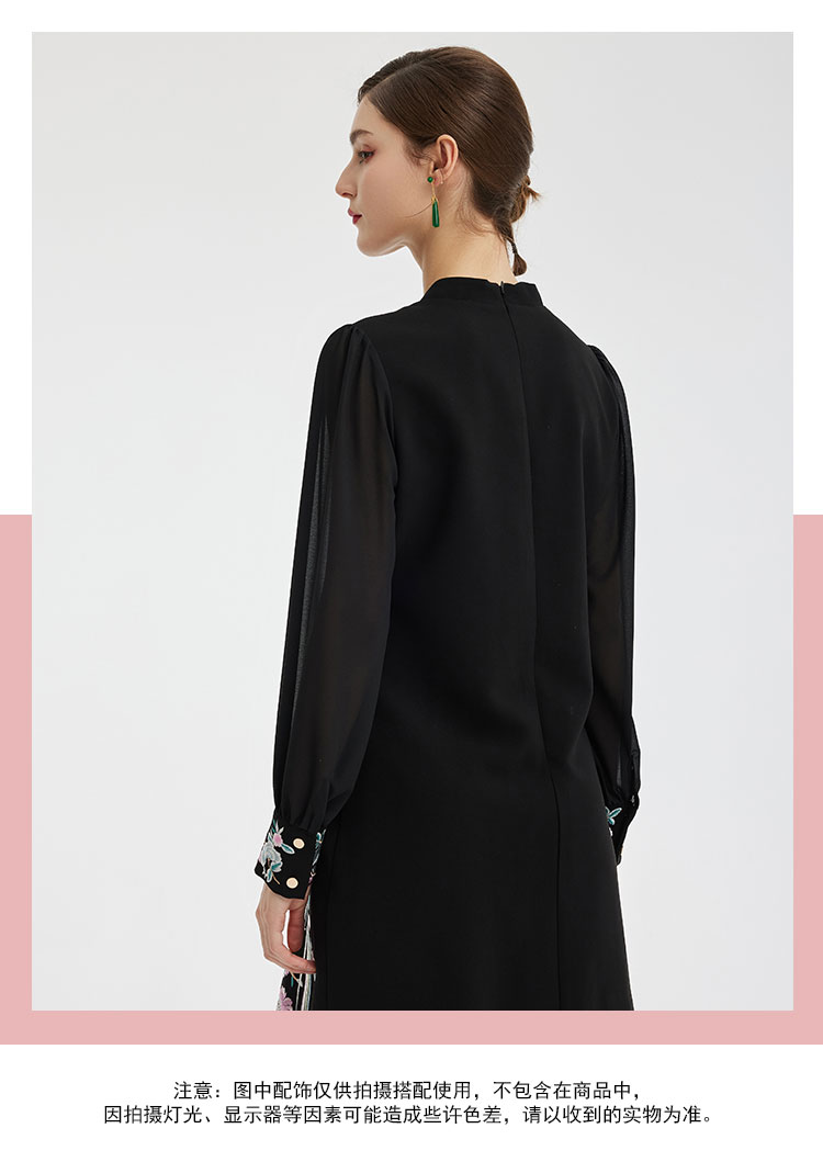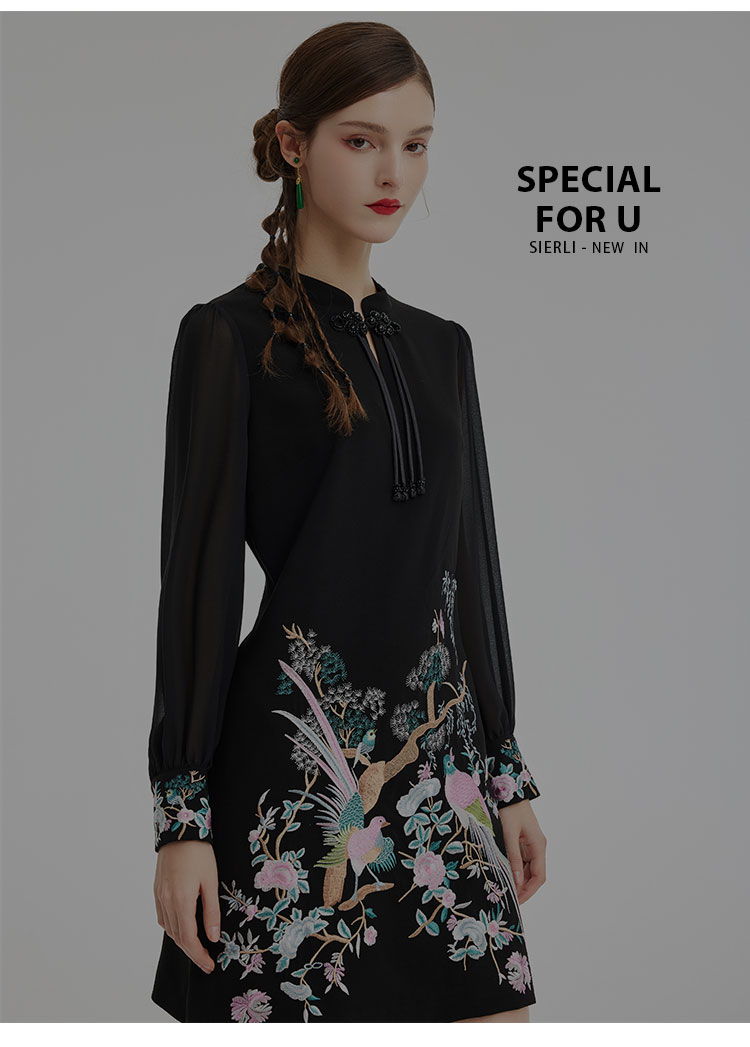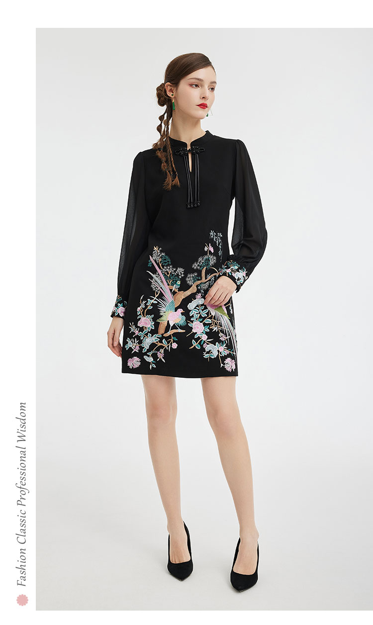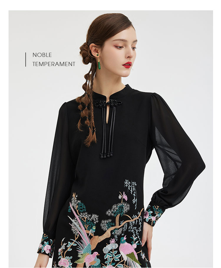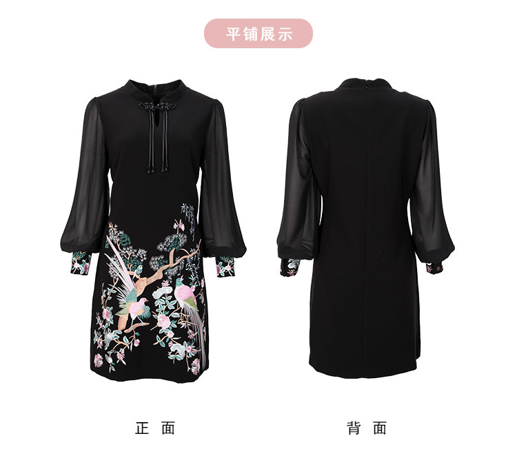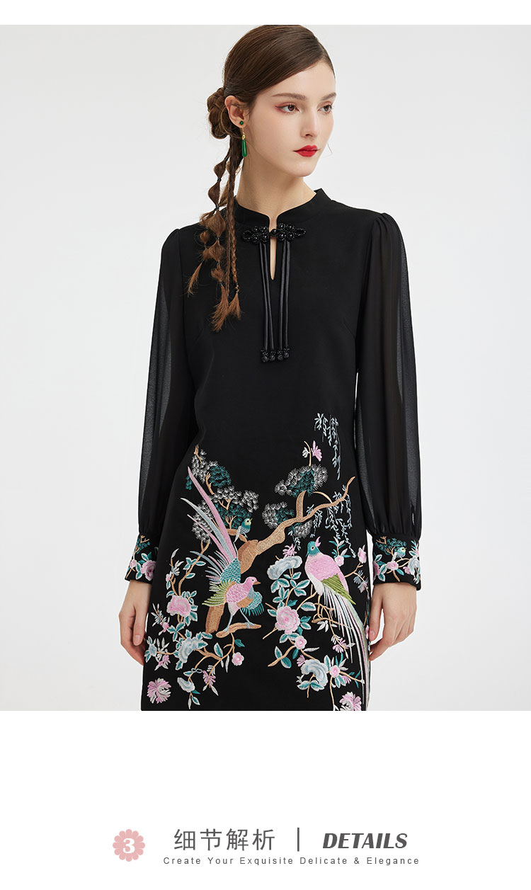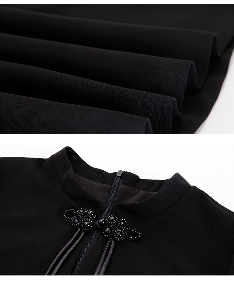 PF831斯尔丽24新中式国风气质改良式旗袍手工盘扣雪纺抛袖直身连衣裙