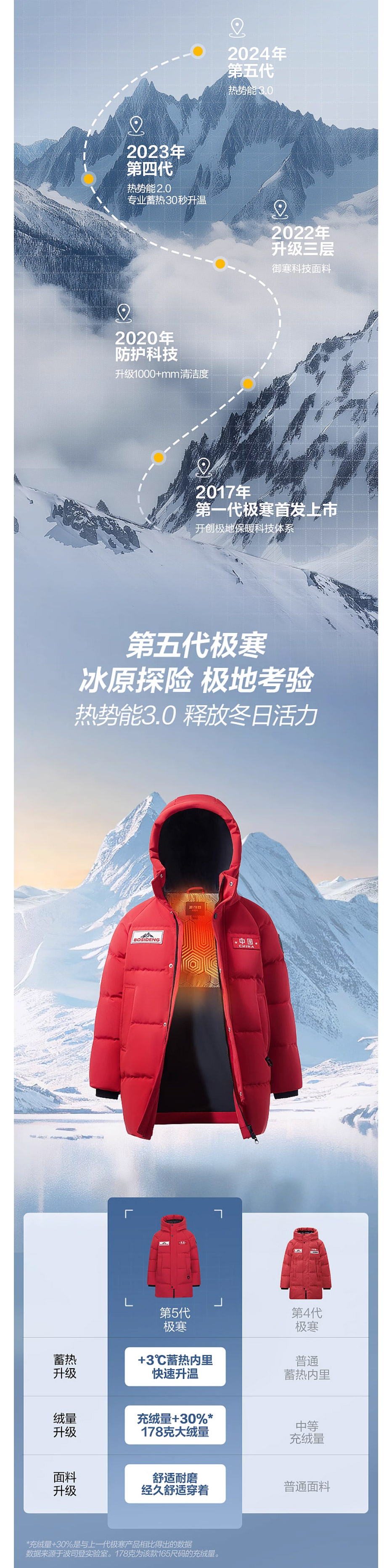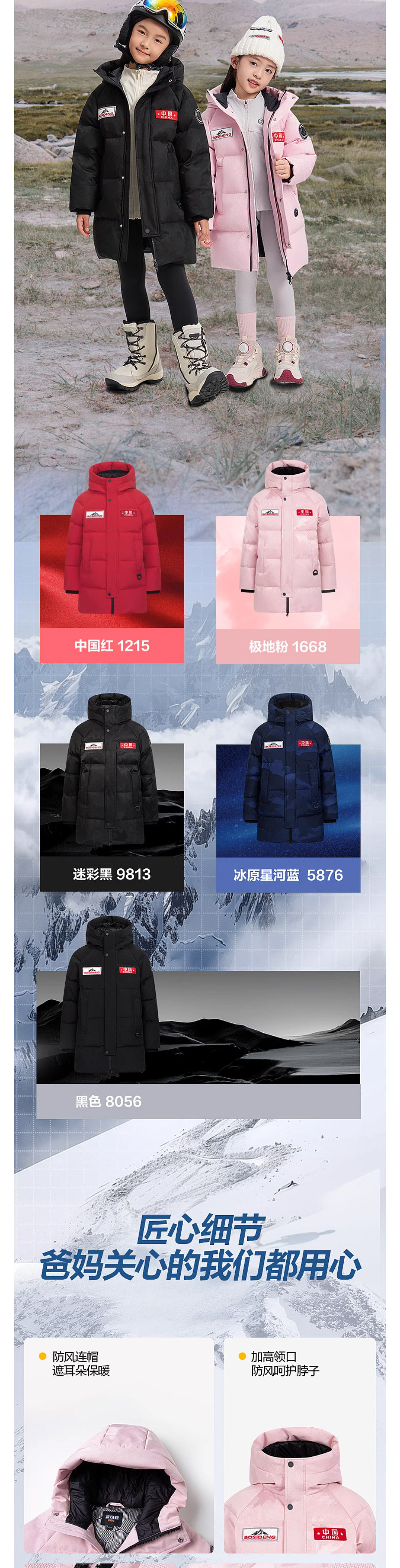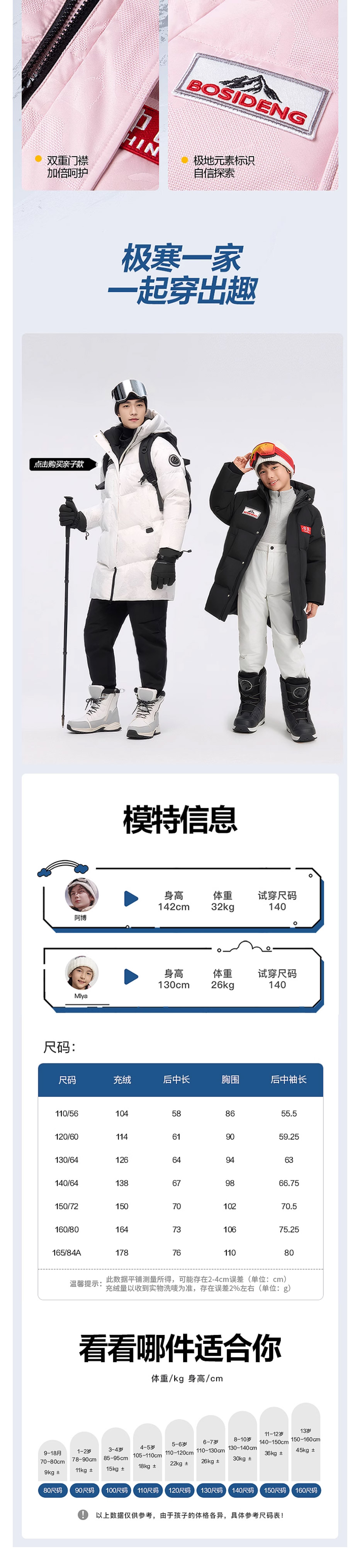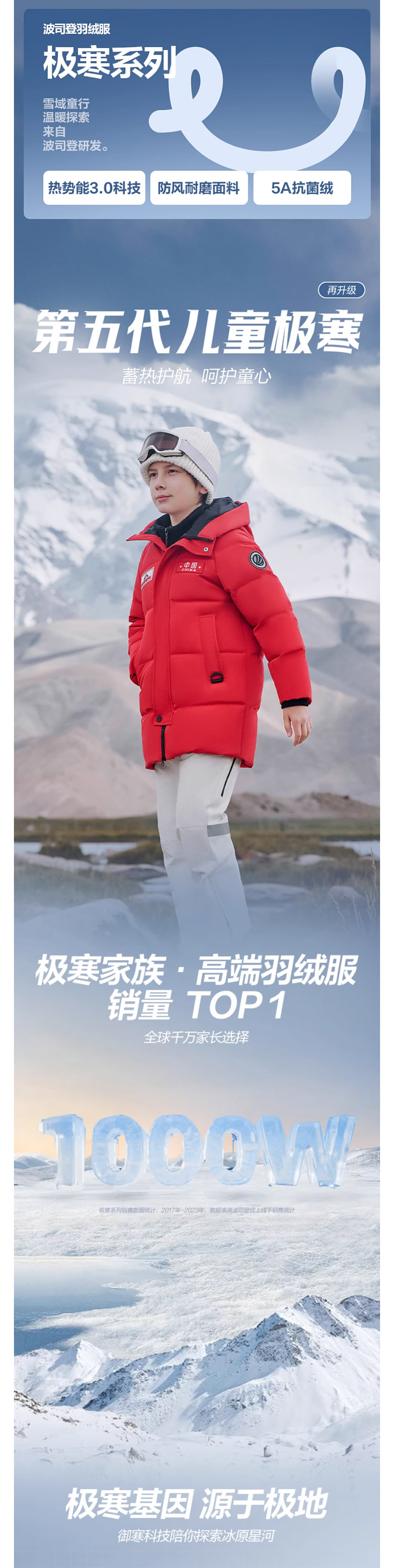 波司登极寒系列儿童羽绒服女童男童中长款加厚防风T250242340Q