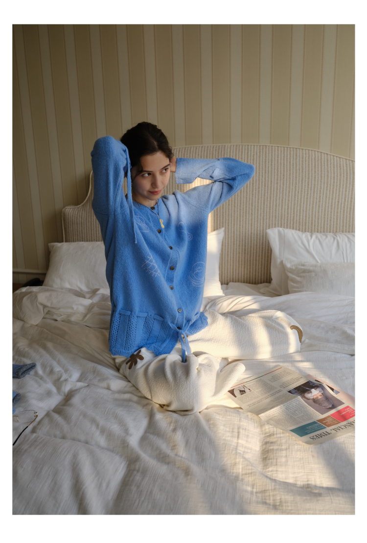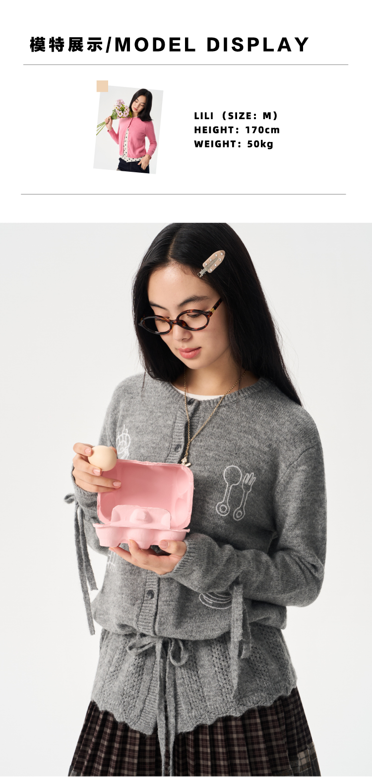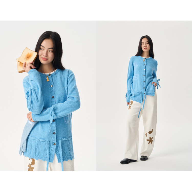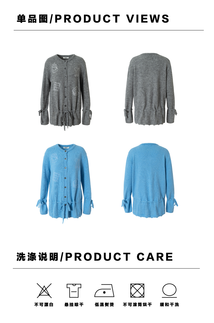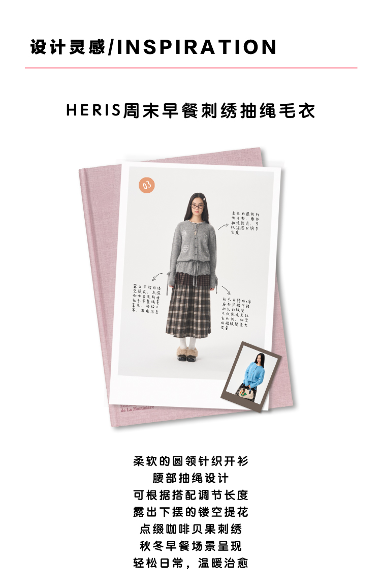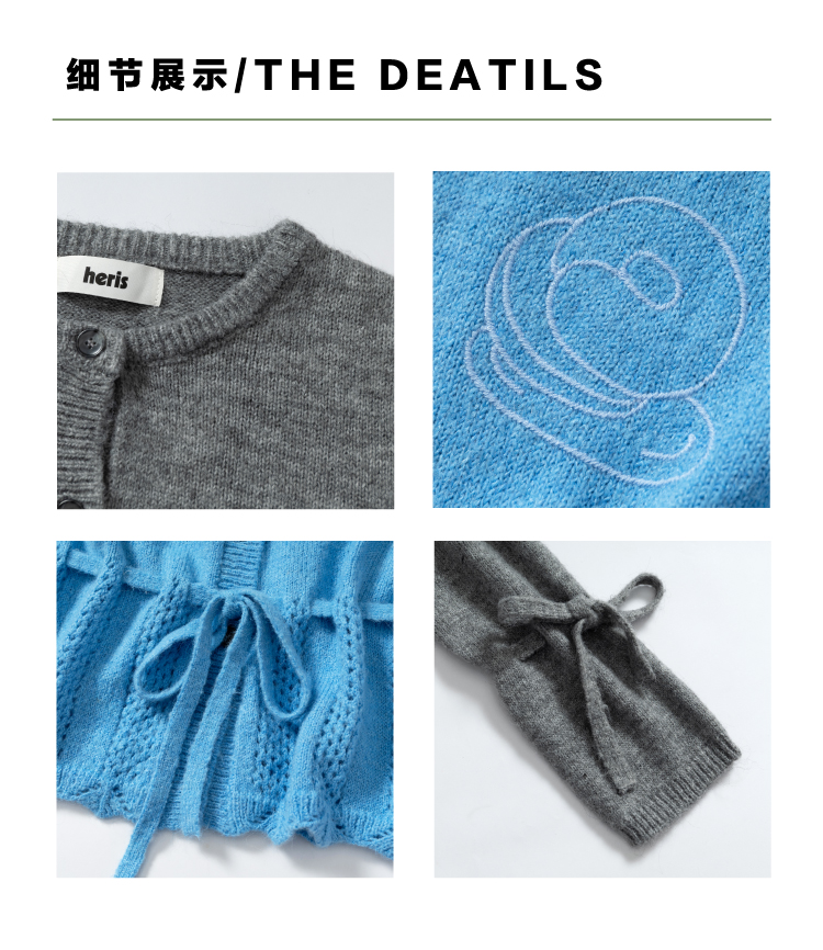heris/H54104/周末早餐刺绣 镂空钩花下摆 抽绳多穿羊驼羊毛毛衣开衫