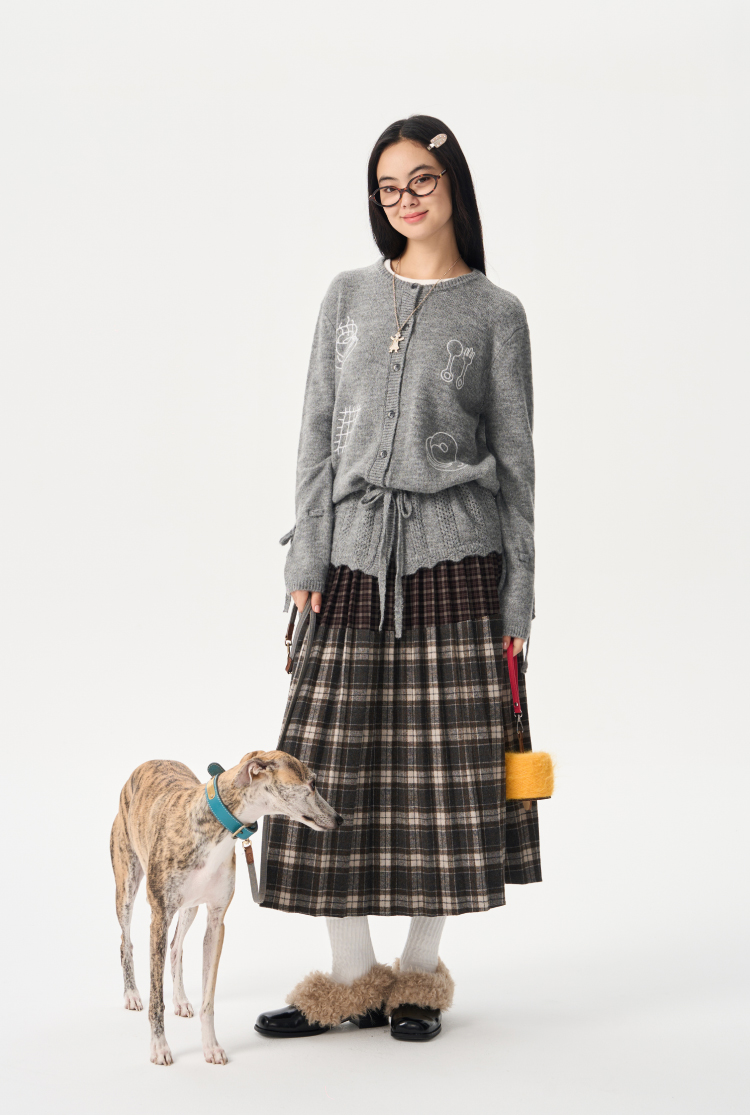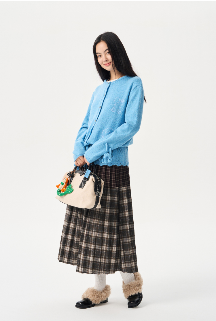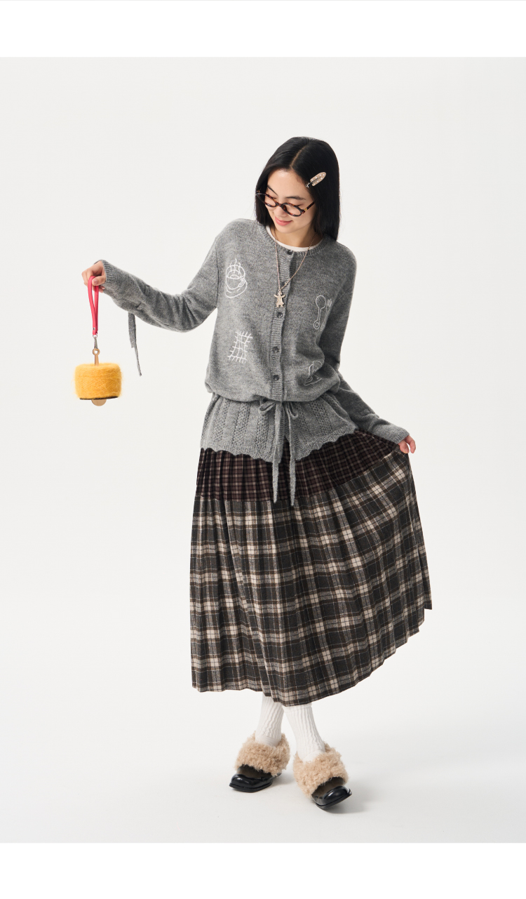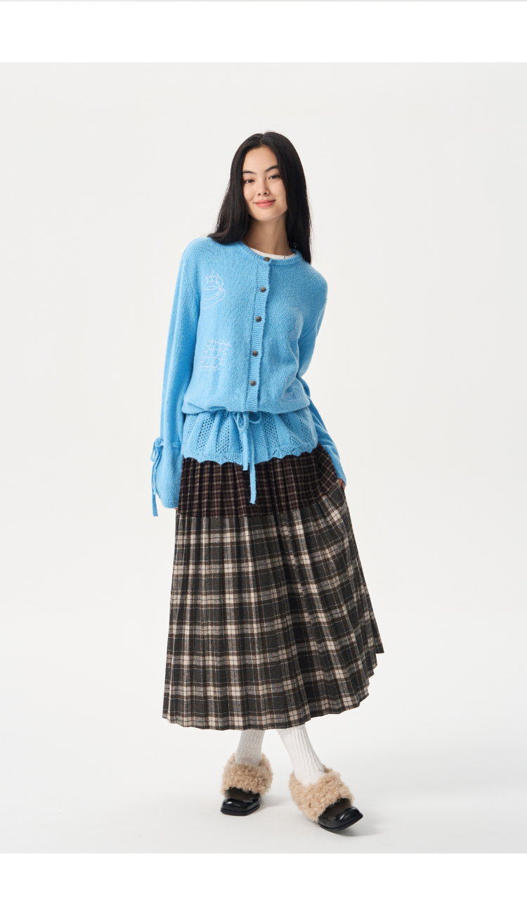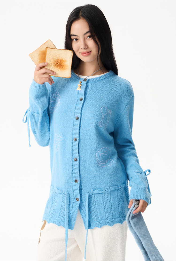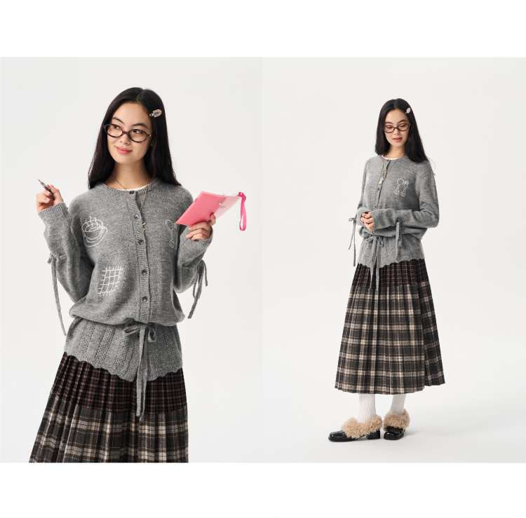 heris/H54104/周末早餐刺绣 镂空钩花下摆 抽绳多穿羊驼羊毛毛衣开衫