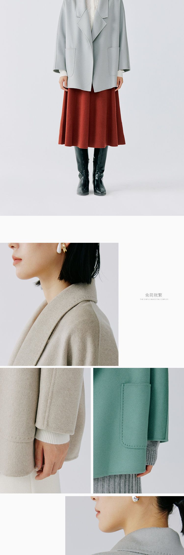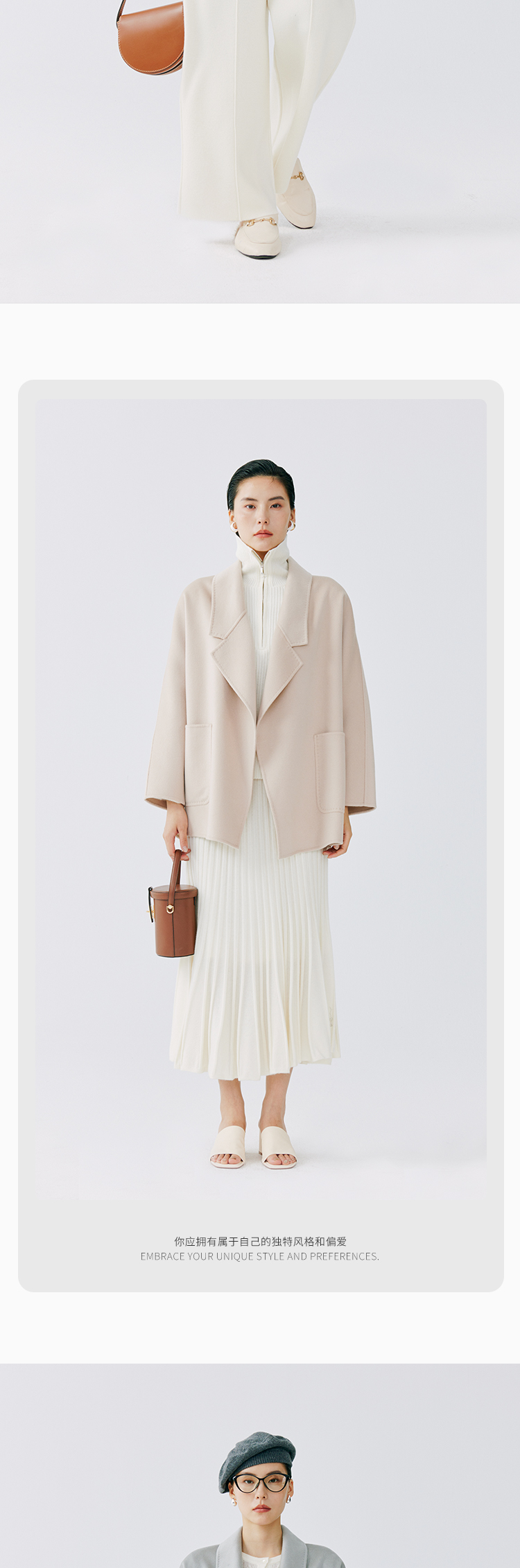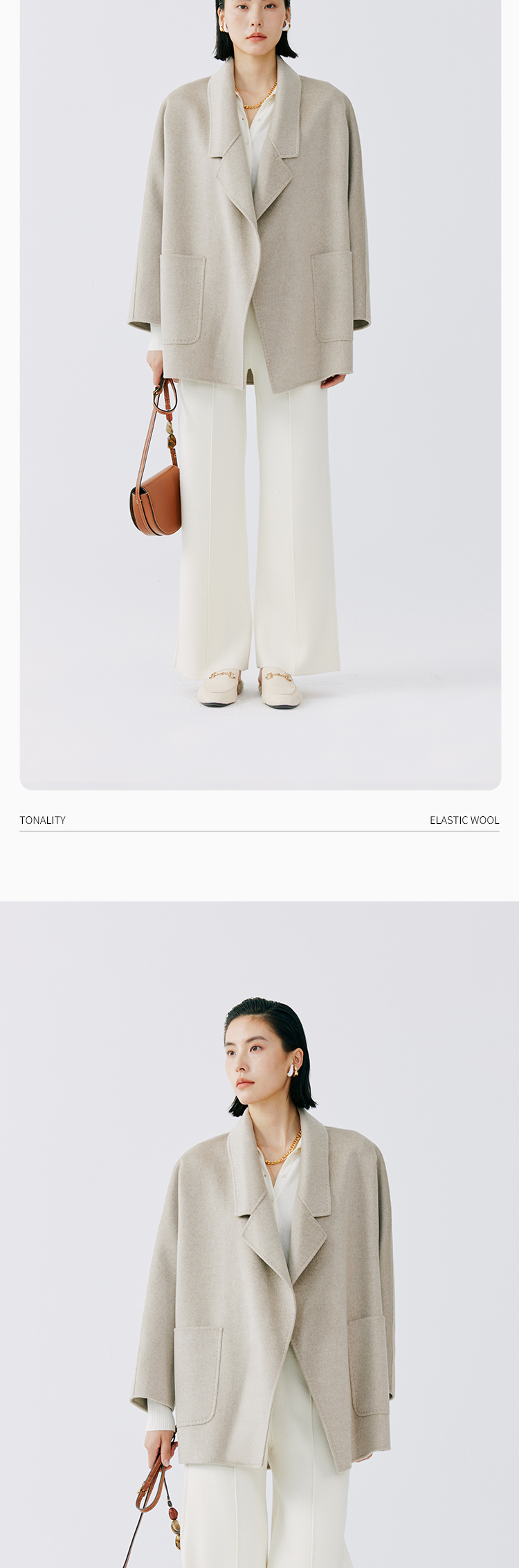 东黎 • 山羊绒女士学院风西服领时尚宽松休闲大衣 4421