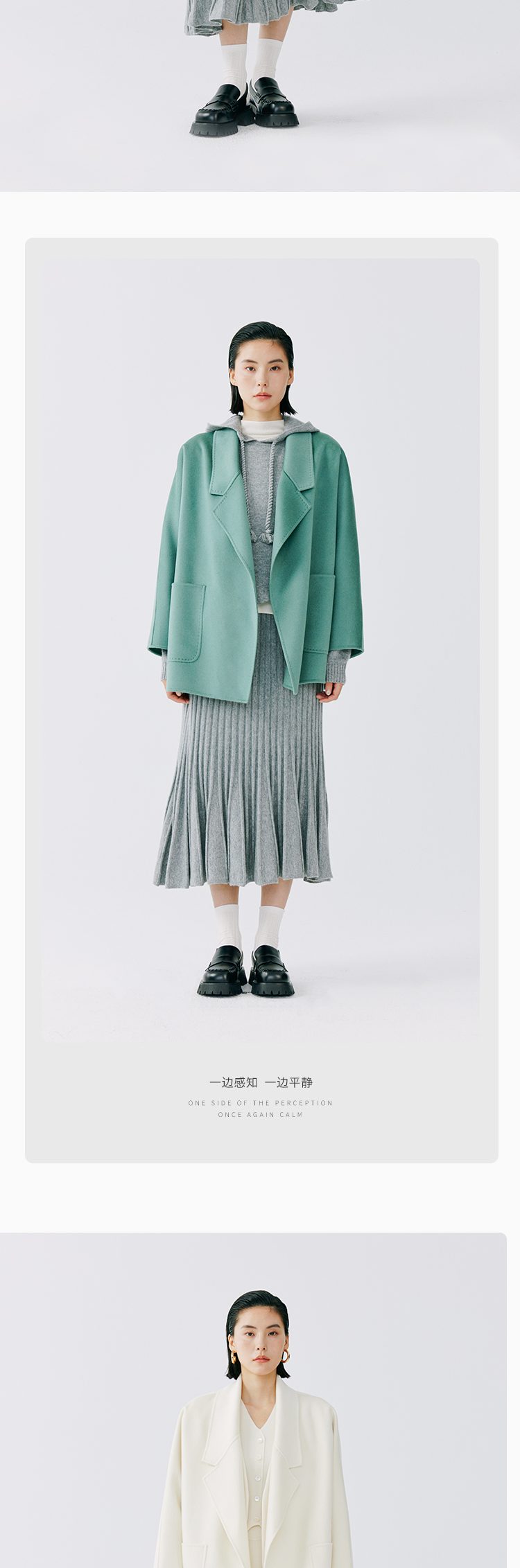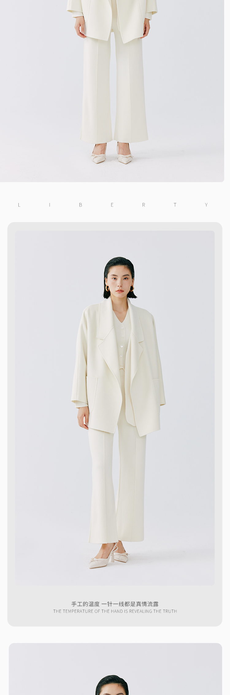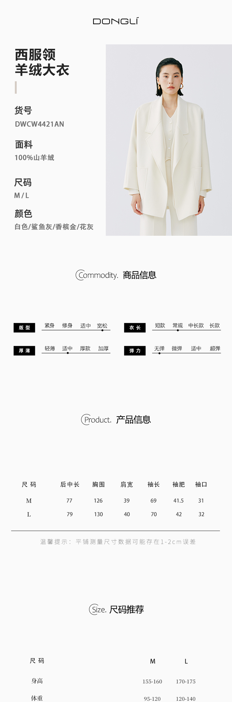 东黎 • 山羊绒女士学院风西服领时尚宽松休闲大衣 4421