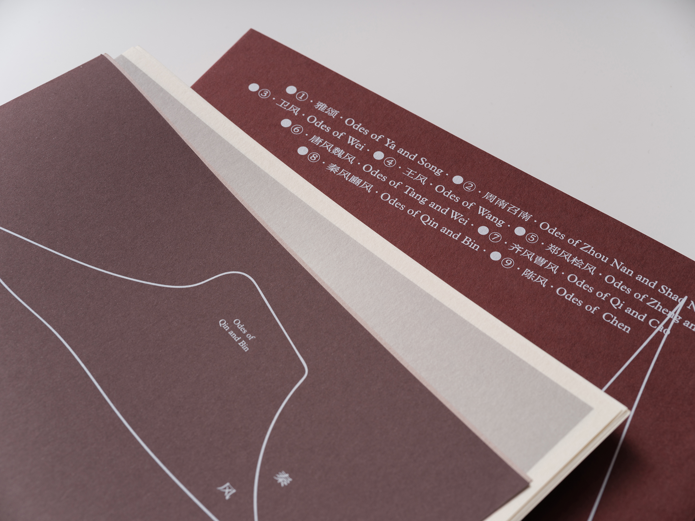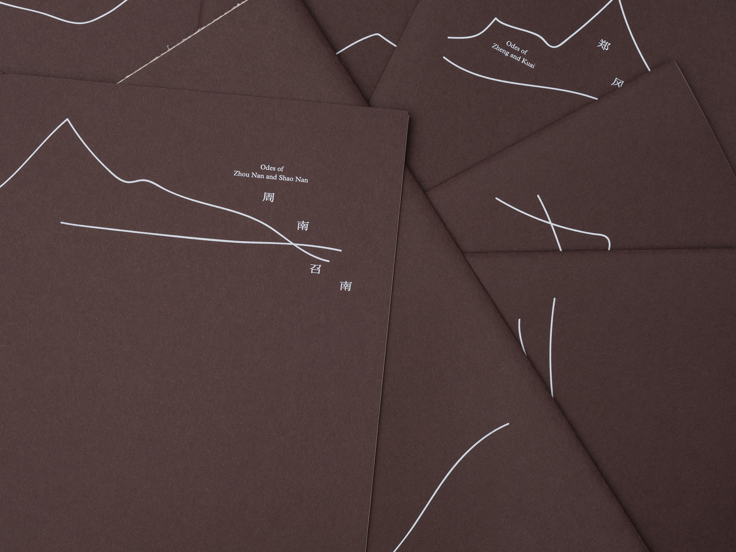 《诗山河考》是摄影家塔可对《诗经》中山川、河流与遗迹的再访。设计延续作品的探索性,没有采用传统装订,而是将全书拆解为九个章节的散页,使书籍成为可被展开、并置与重新组合的空间。