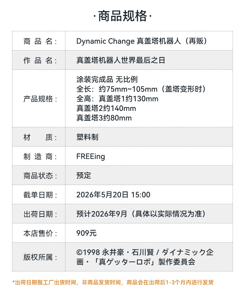 【GSC预售定金】Dynamic Change 真盖塔机器人 手办模玩
