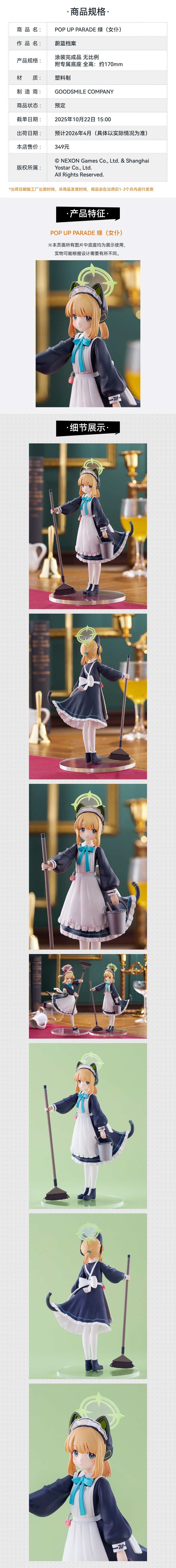 【GSC补款】POP UP PARADE 绿(女仆)蔚蓝档案 手办模玩