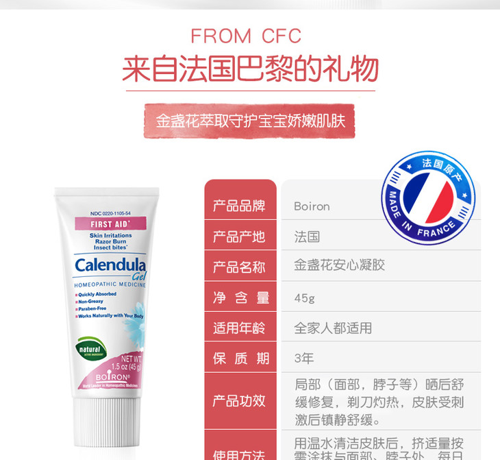 Boiron宝弘金盏花舒缓凝胶45g【肌肤过敏,舒缓,植物配方】
