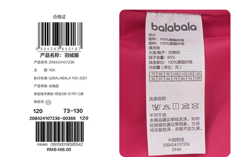 巴拉巴拉婴儿羽绒服男童冬季女童短款外套新款时髦洋气潮流萌★