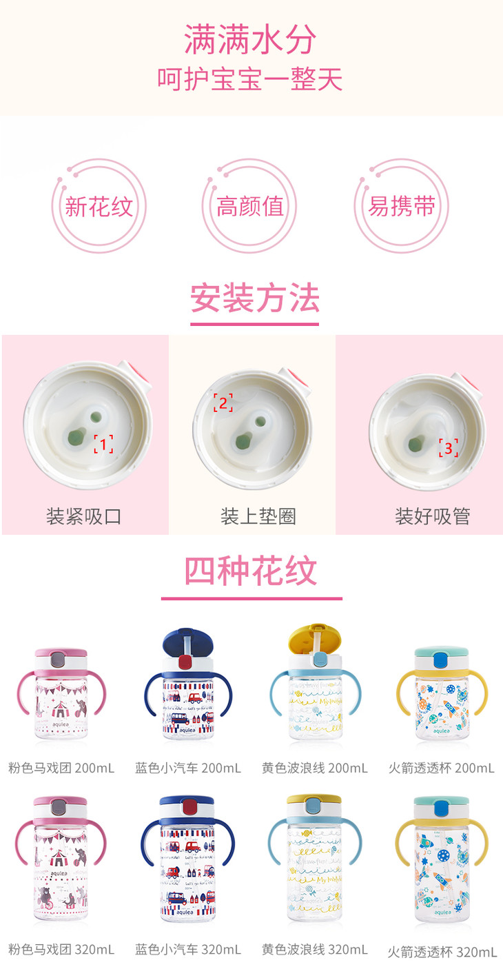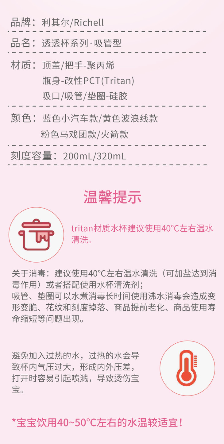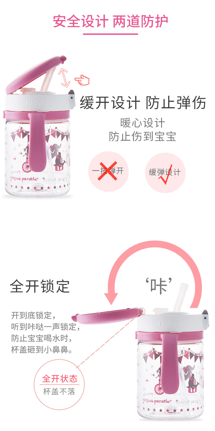 日本利其尔Richell卡通透透杯吸管杯200/320ml