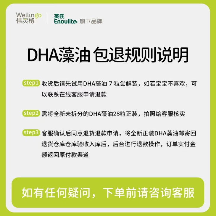 【下单送1周量】英氏伟灵格DHA海藻油28粒+送7粒体验装(请先食用体验装,若宝宝不喜欢吃,请退回30粒/瓶正装,再联系客服退款)