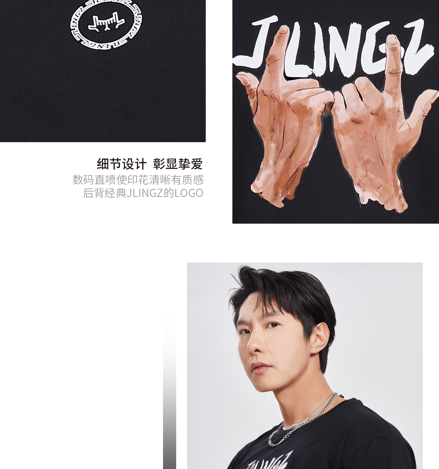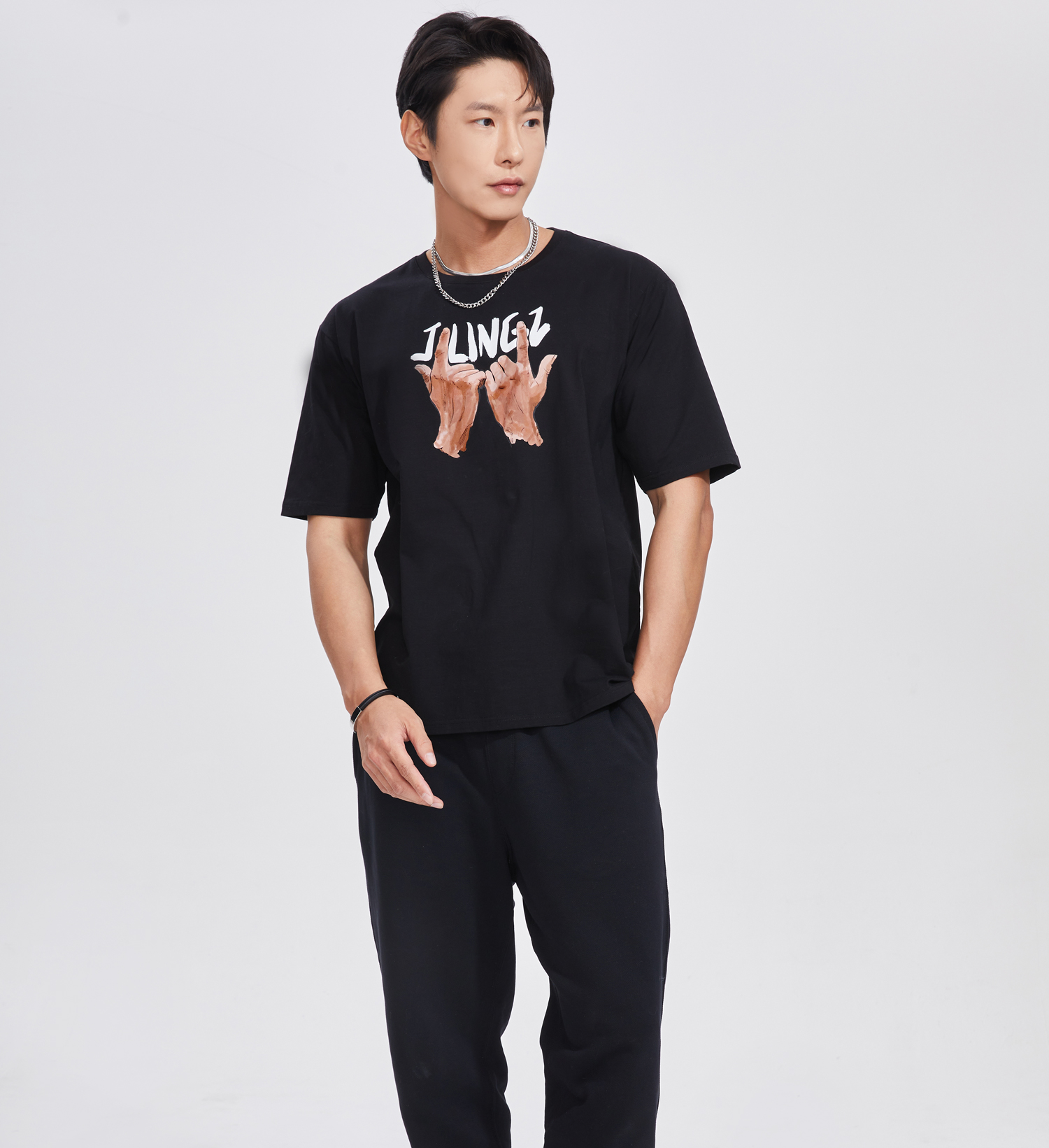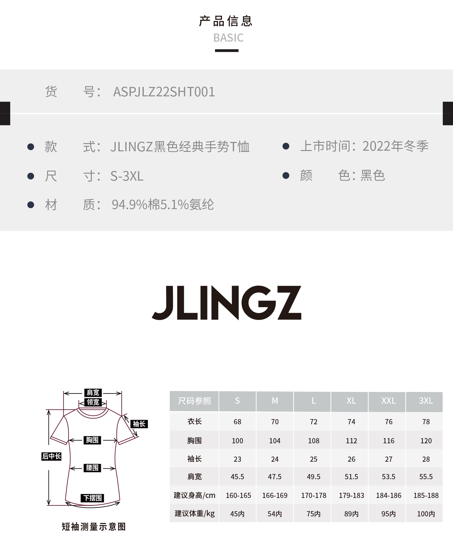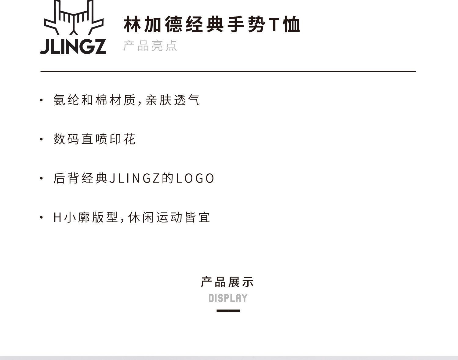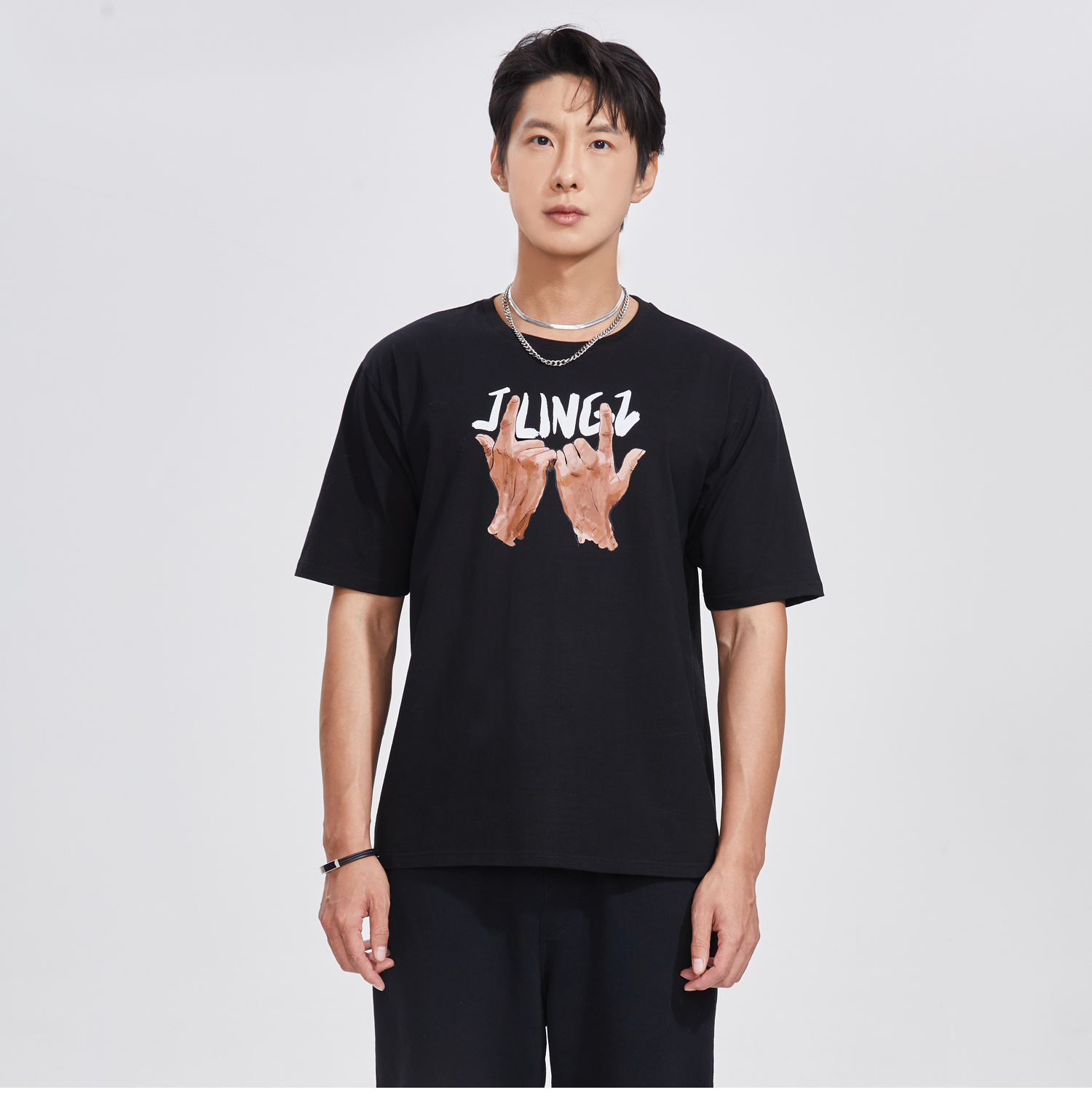 JLINGZ林加德官方产品 | 经典手势黑色短袖圆领潮流时尚休闲潮酷