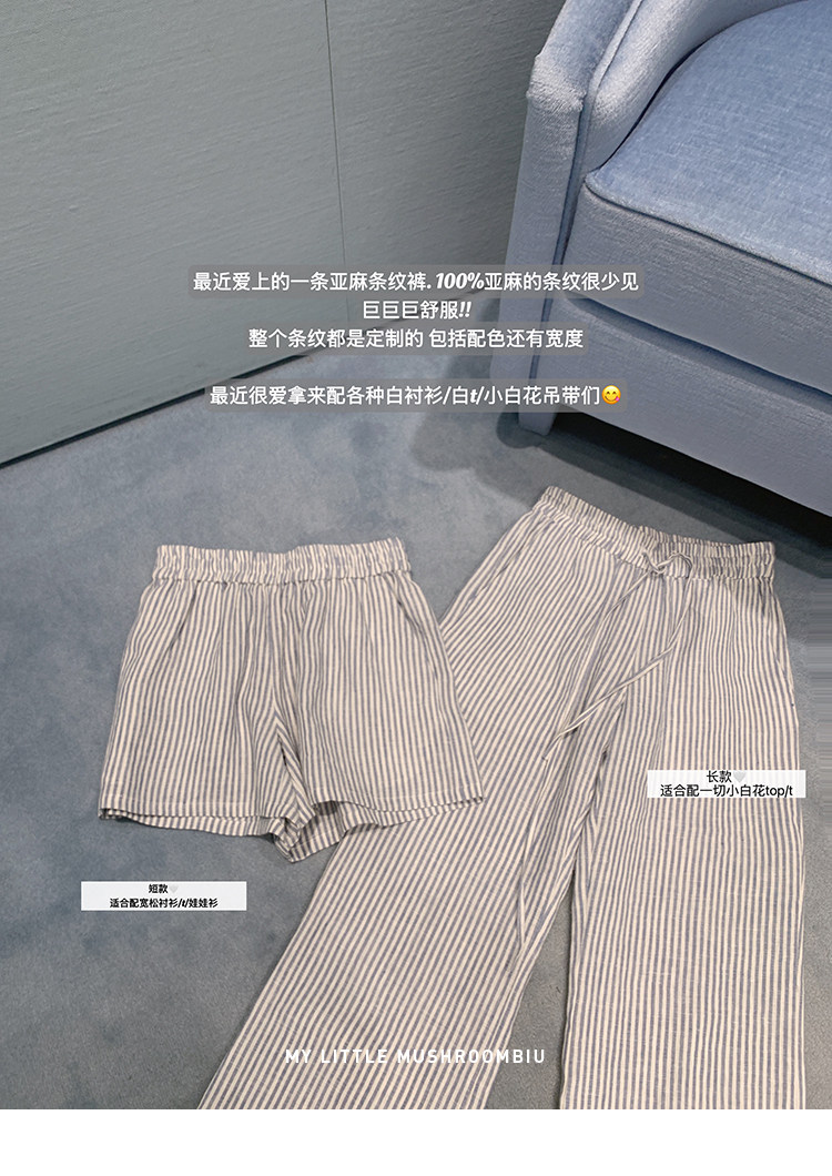 金蘑菇菇 夏夜兜风 夏天和亚麻条纹裤 / 100亚麻 定制条纹配色