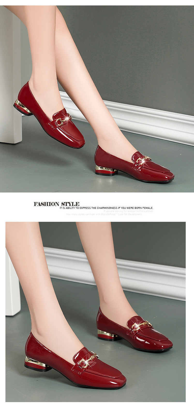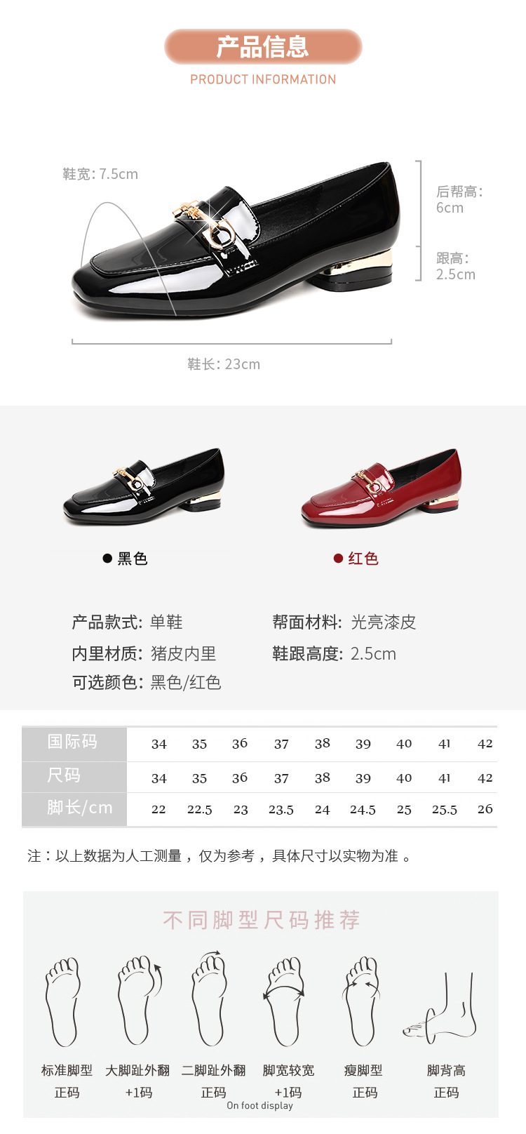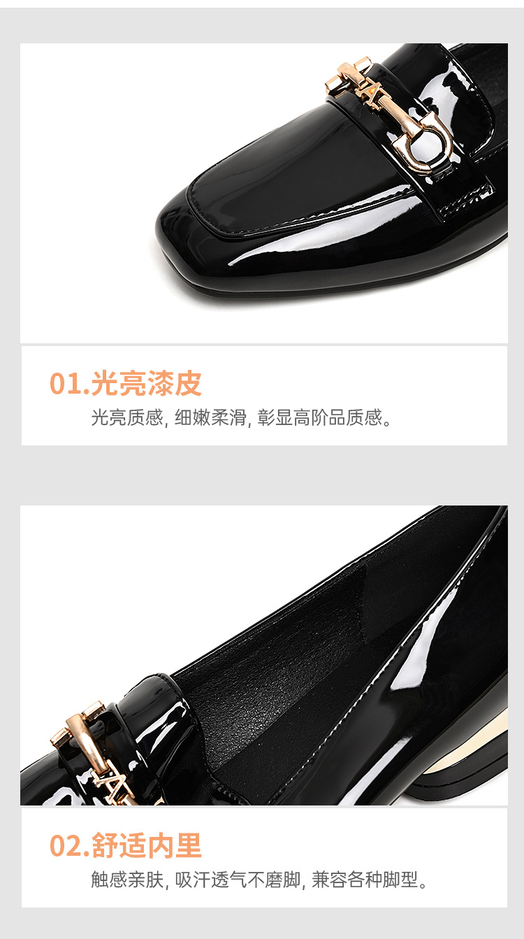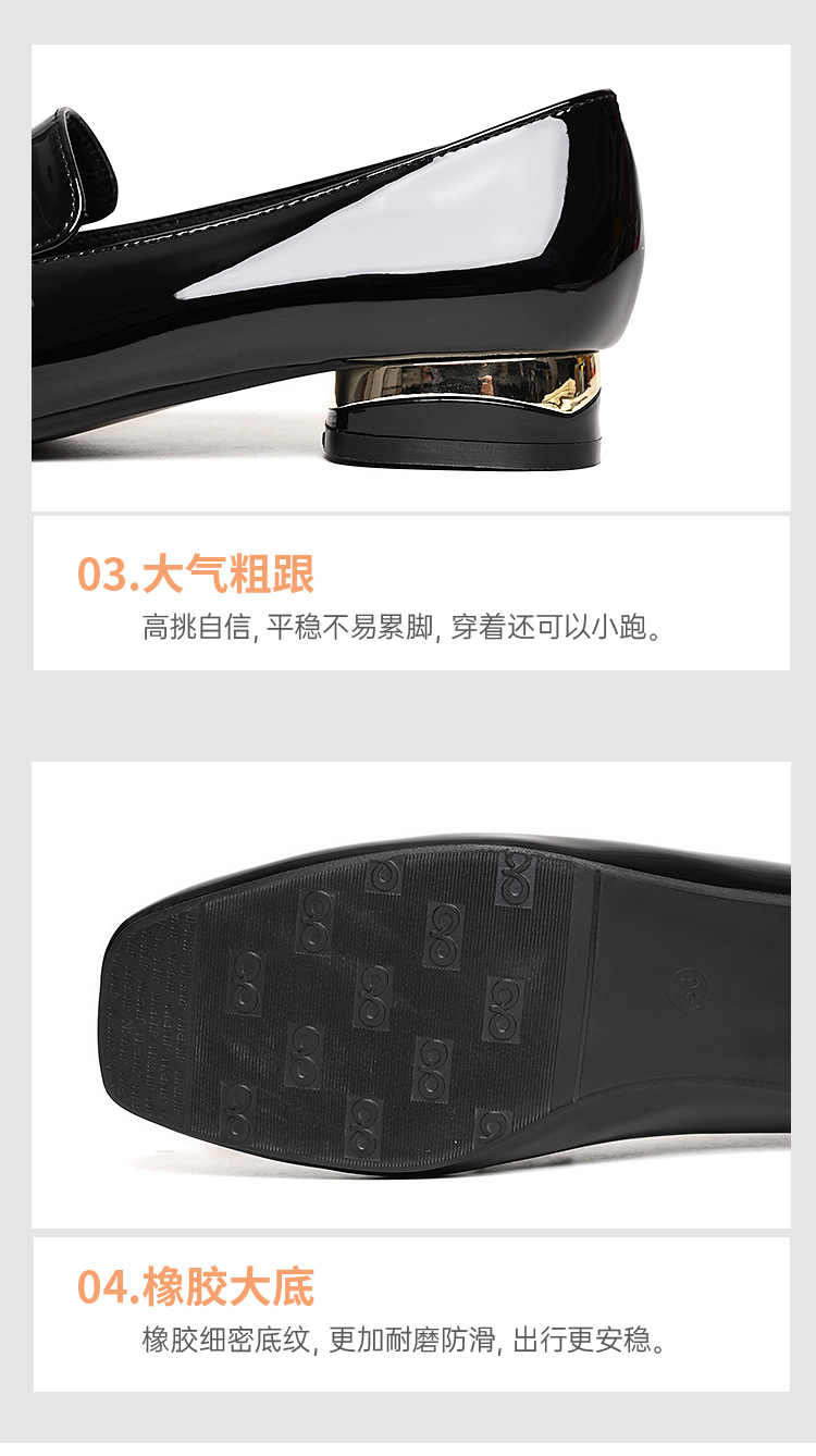 软皮单鞋百搭中跟软底浅口粗跟小皮鞋大码LX8098