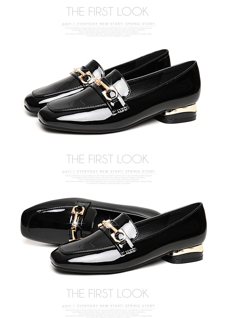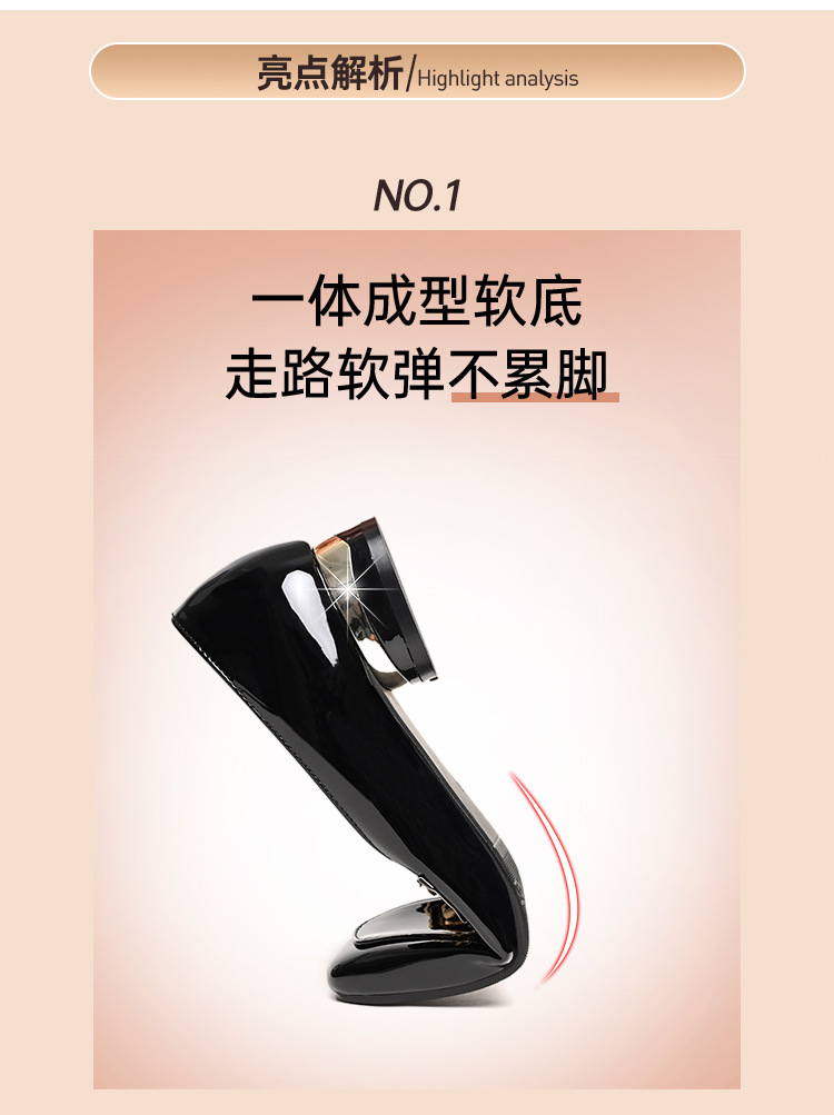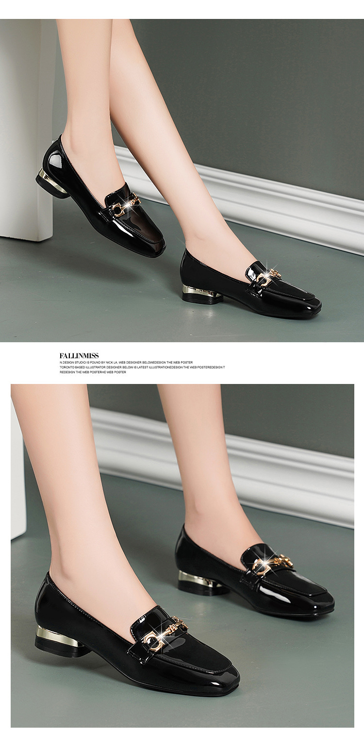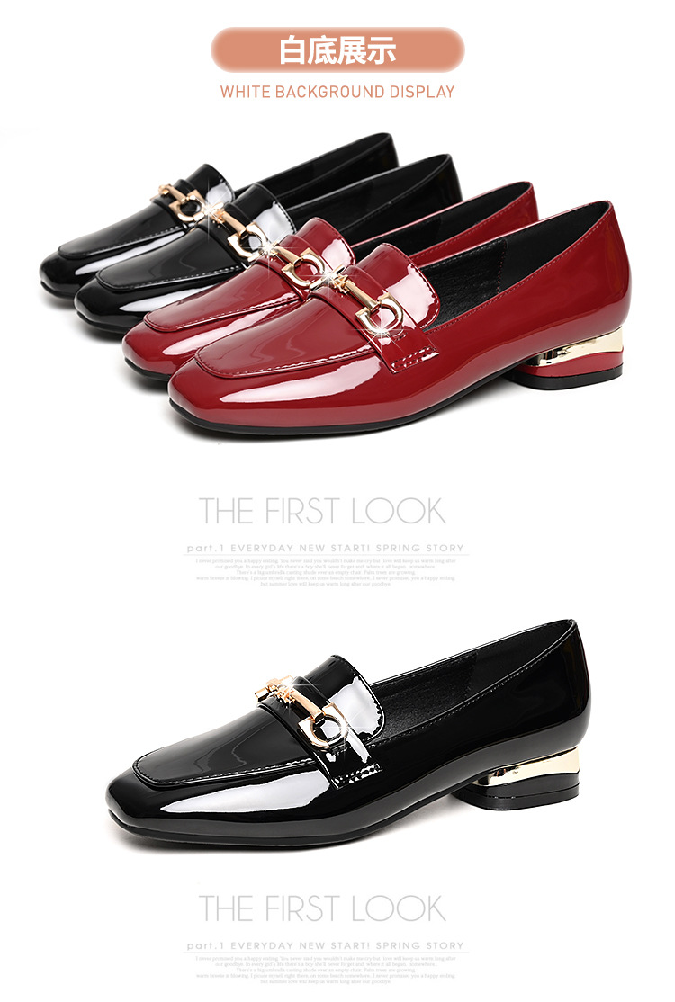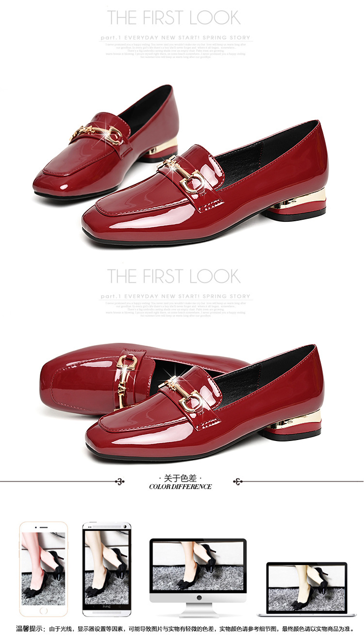 软皮单鞋百搭中跟软底浅口粗跟小皮鞋大码LX8098