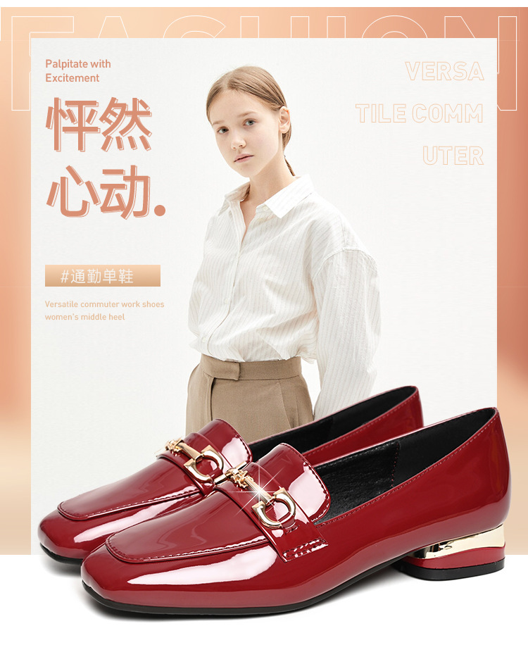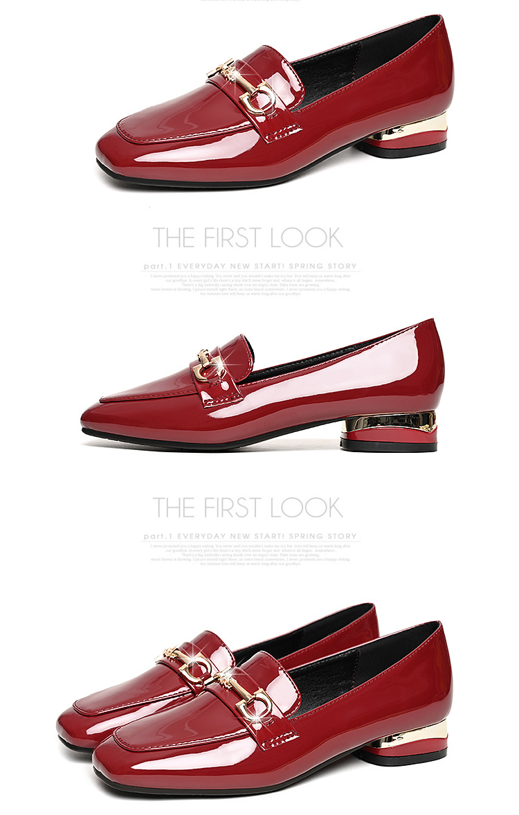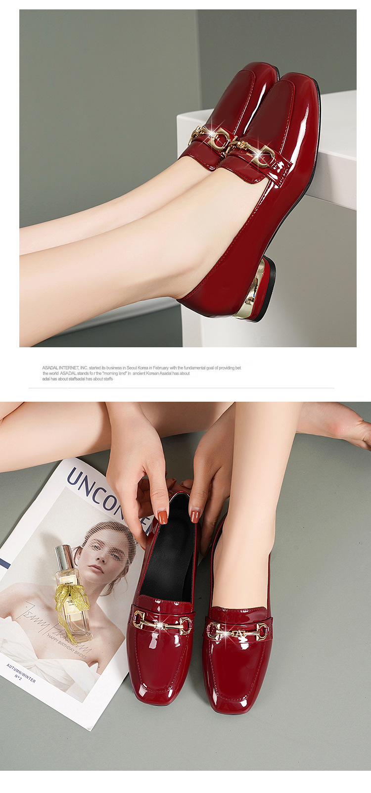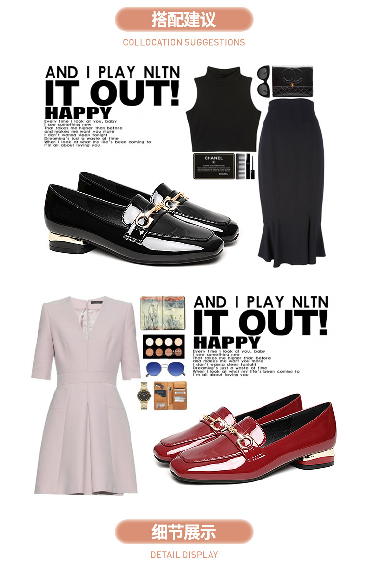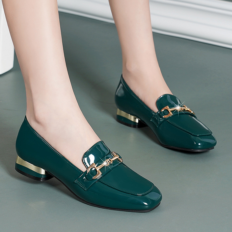 软皮单鞋百搭中跟软底浅口粗跟小皮鞋大码LX8098
