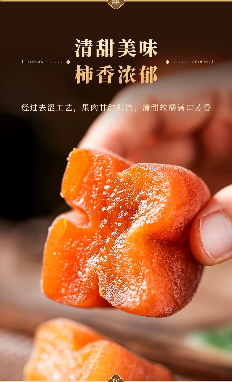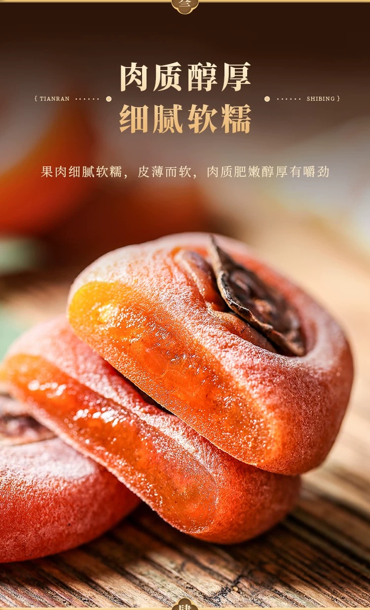 【正宗流心柿饼 500g/袋】自然阳光晾晒 自然上霜 个大形圆 肉厚质软 清新甜香