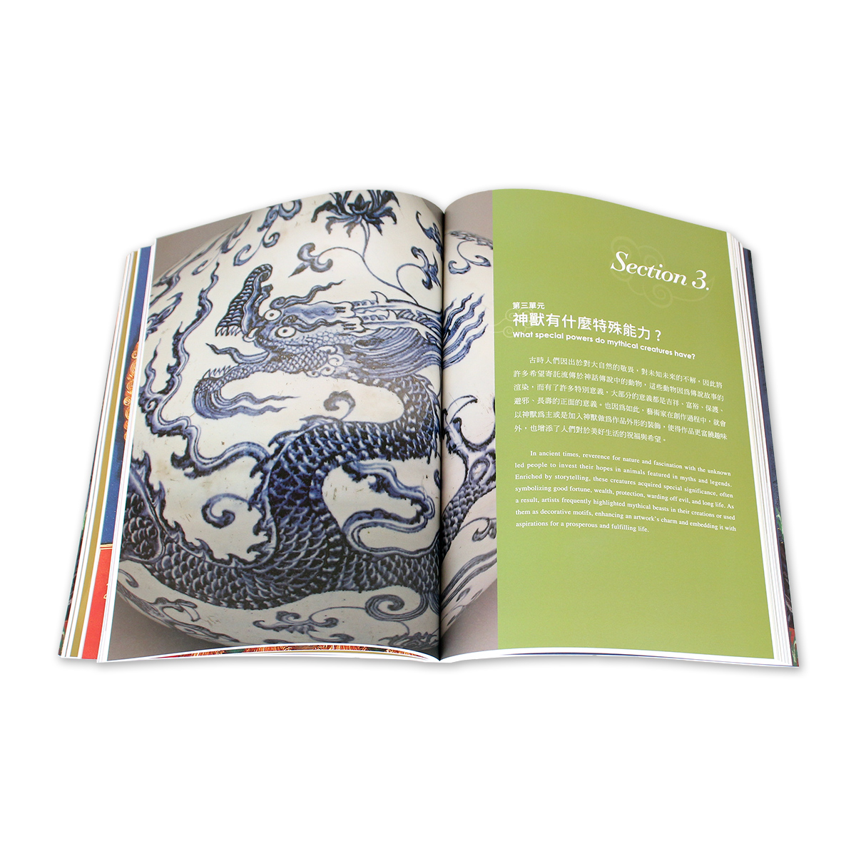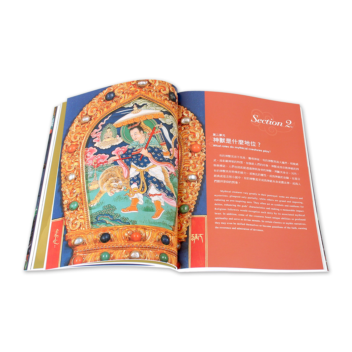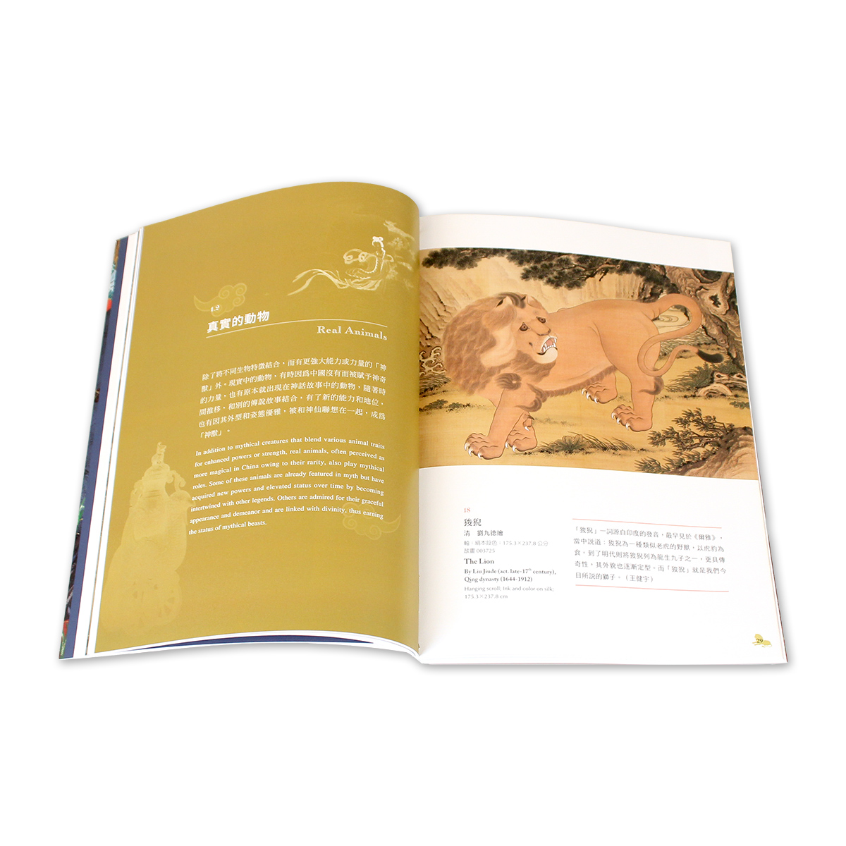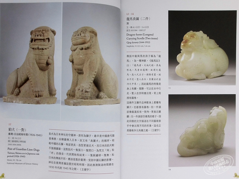 本書為特展導覽手冊,共四個單元,經由「神獸長什麼樣子 ?」、「神獸是什麼地位 ?」、「神獸有甚麼特殊能力 ?」、「神獸出現在哪裡 ?」等四個提問,帶領觀眾一同探索神祕的神獸祂們的外觀、身分、本事和出現的位置等面向,並呈現藝術家們如何結合自己的認知和想像力,將這些只出現在傳說或是紀錄中的奇幻生物,藉由文物具象化,創造出一件件令人驚奇但又各具特色的神獸作品。