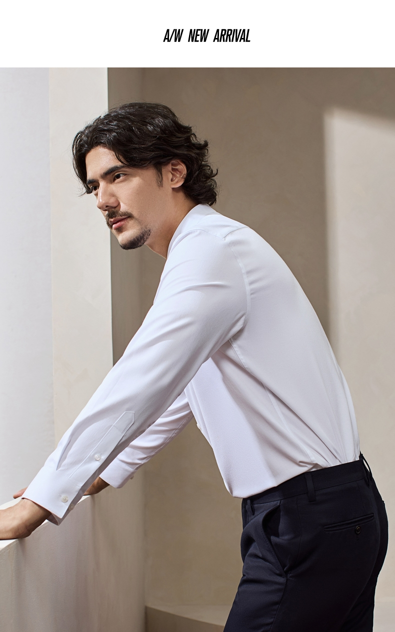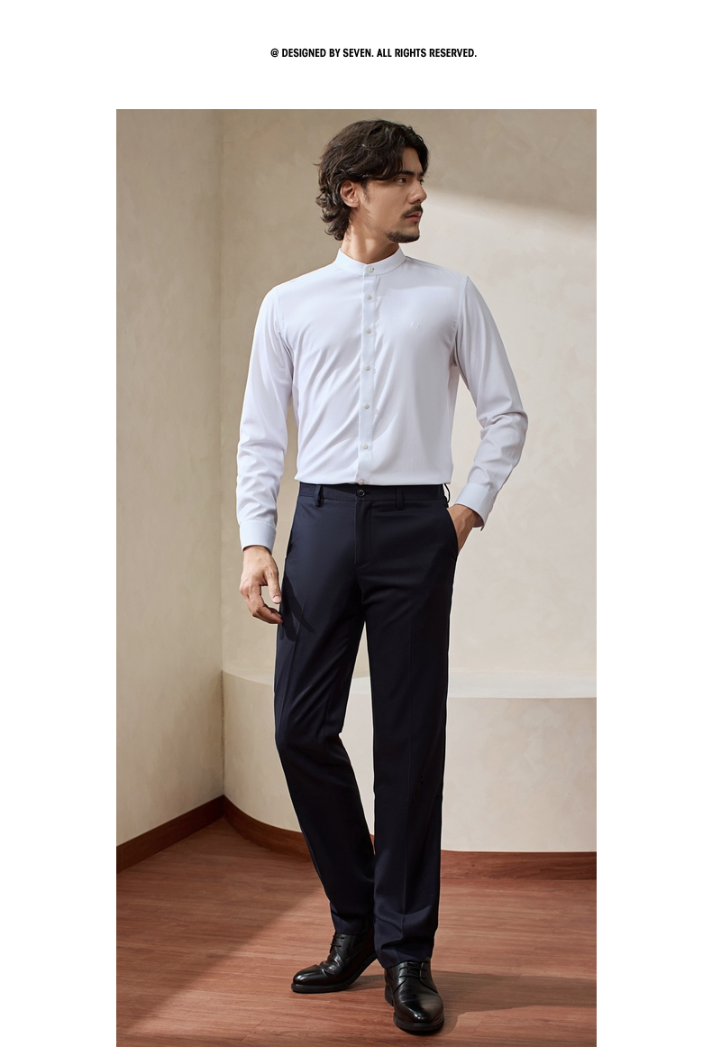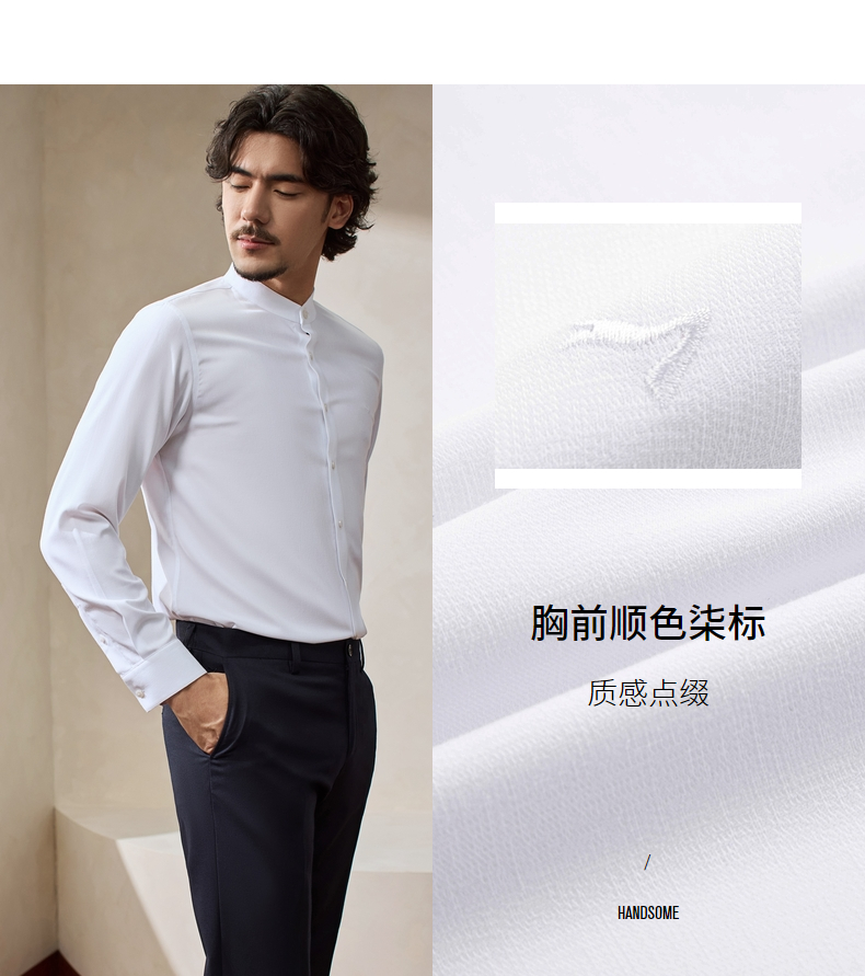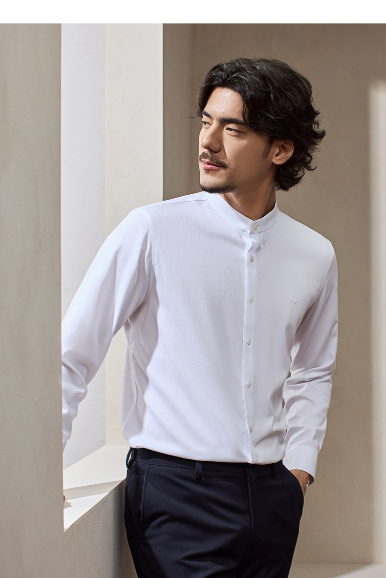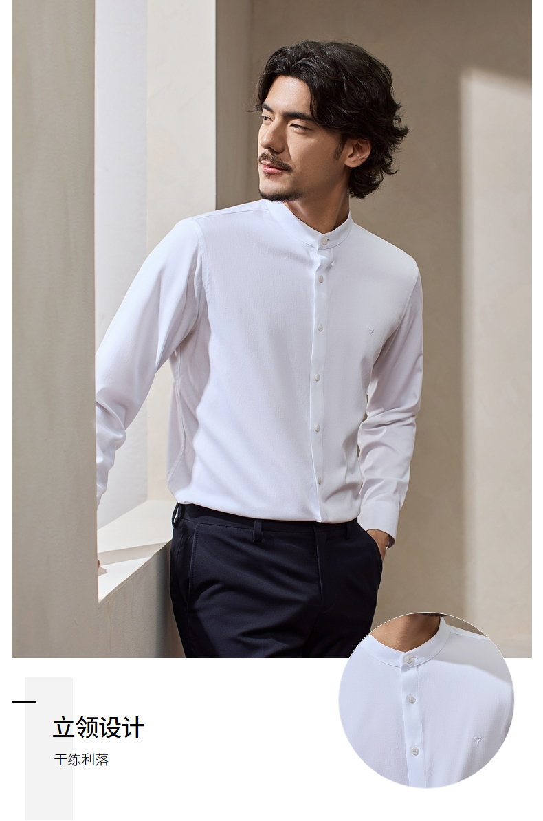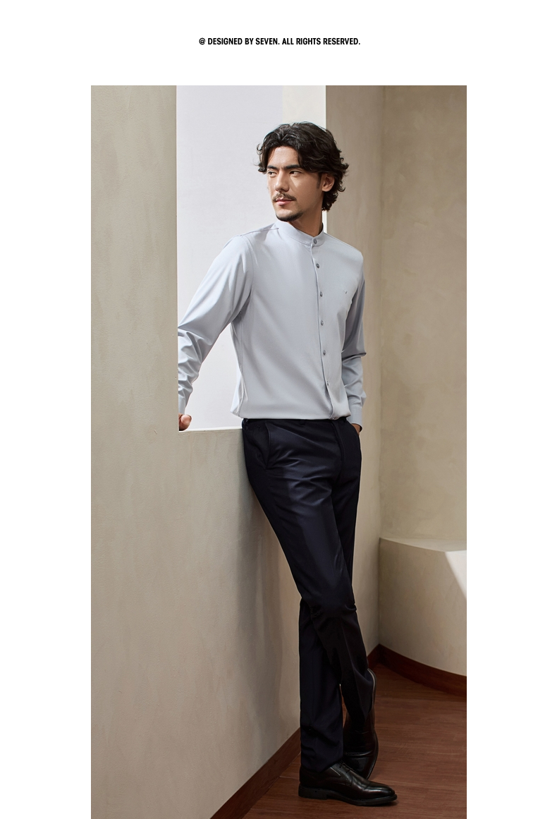 【立领衬衫/莫代尔】柒牌中华立领长袖衬衫2025秋季暗纹提花衬衣129A70480