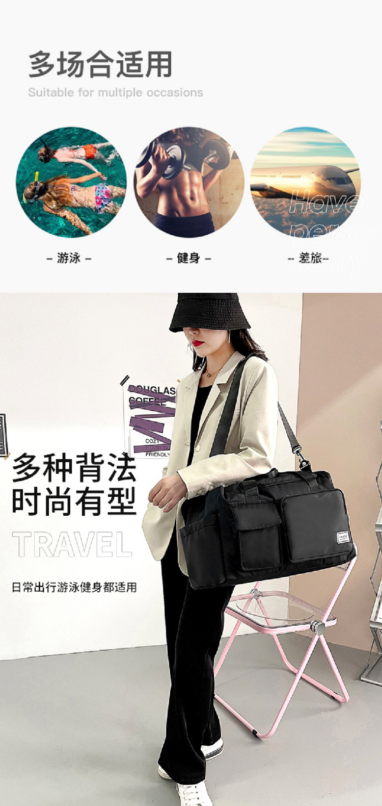 【大容量健身包】休闲多功能手提防水手提袋 短途瑜伽游泳运动旅行包行李袋