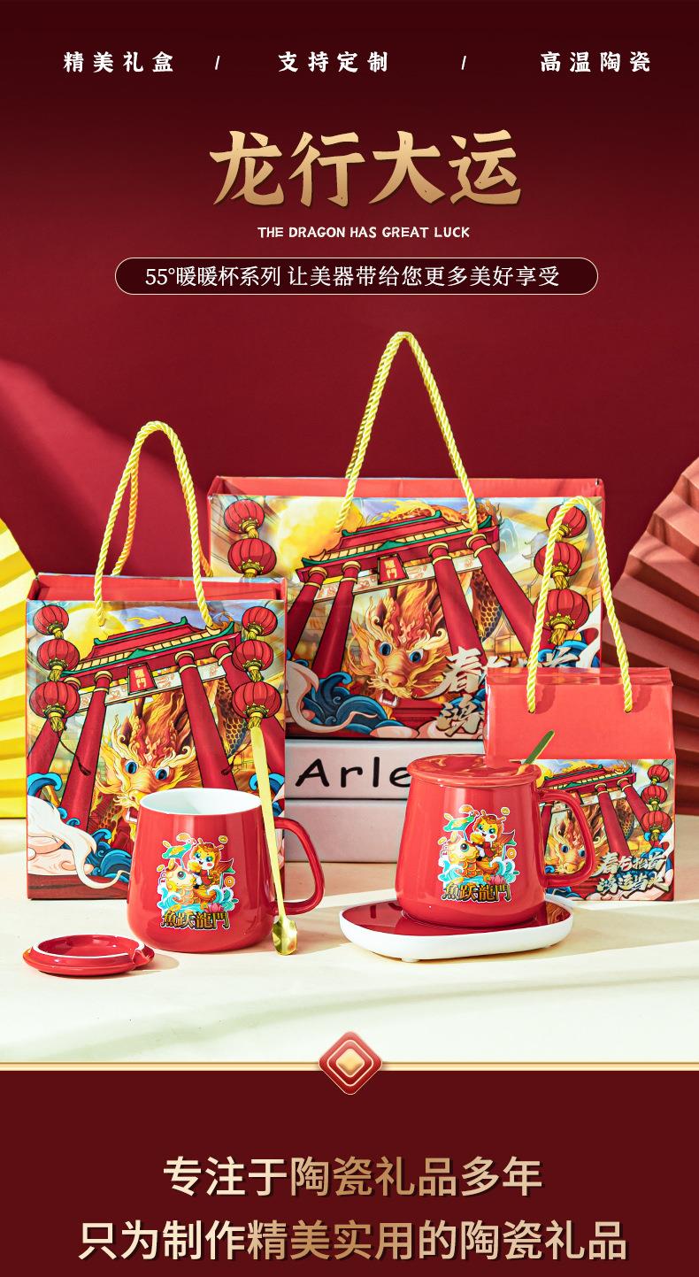 龙年暖暖杯55度恒温杯礼盒装咖啡陶瓷马克杯牛奶杯伴手礼品印logo